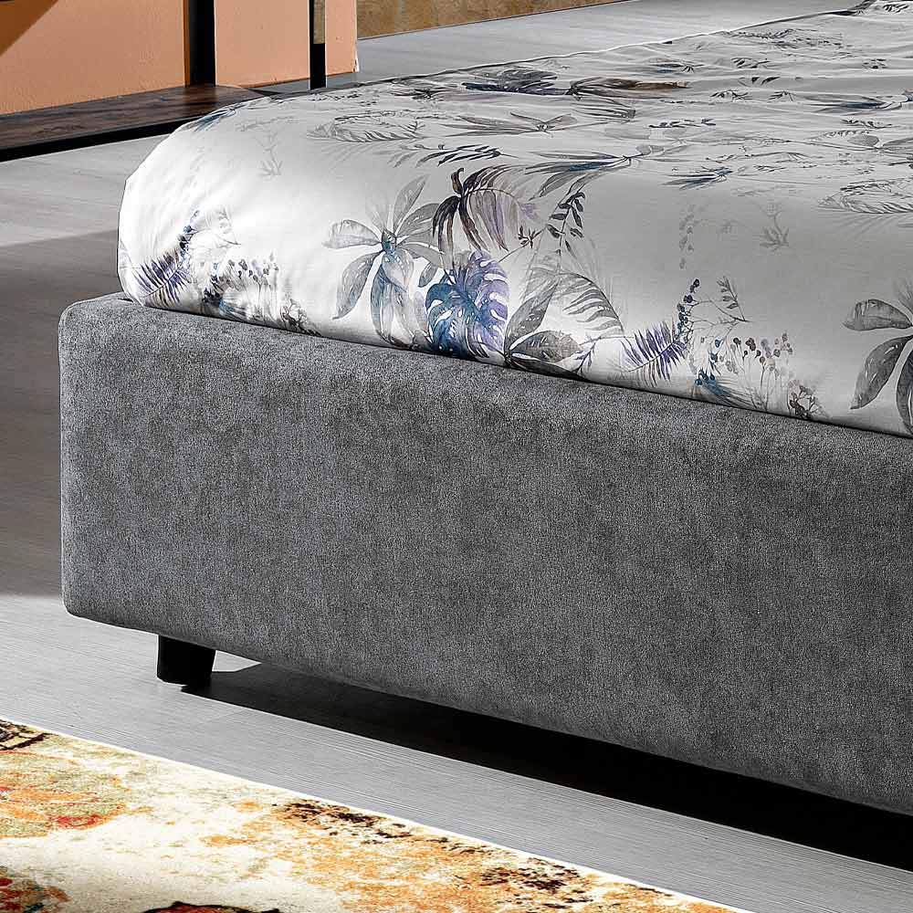 customization , both as regards the measures and the type of coating. The back of the headboard can also be covered, for the maximum aesthetic expression of the product. In fact, a vast collection of fabrics, leathers and eco-leathers to choose from is available. The bed can also be purchased in the version with container. For advice and / or personalized quotes, contact us using the appropriate "
