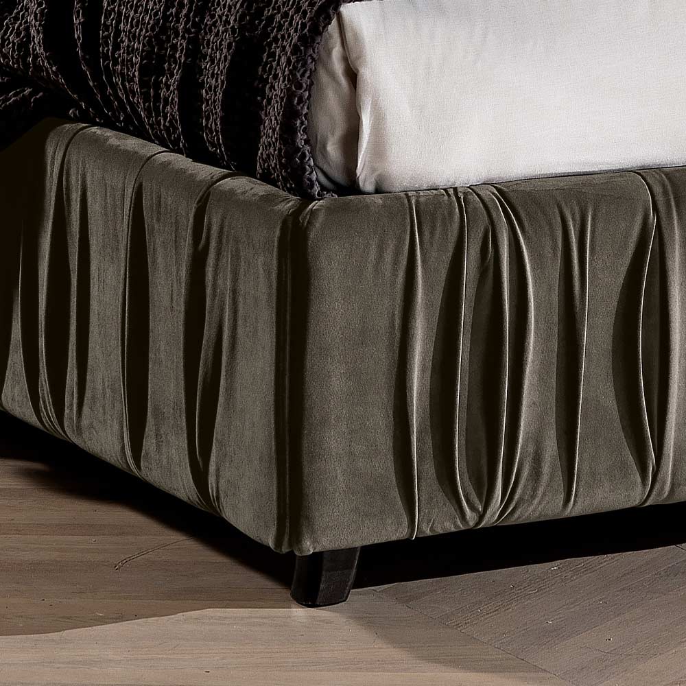 - Headboard: Elements 1 and 3 and bed frame Super smooth velvet col. 34 volcano - Elements 2 and 4 Brox with elephant folds