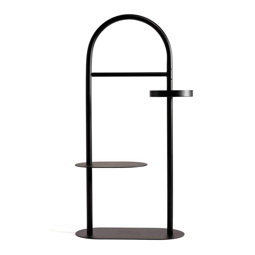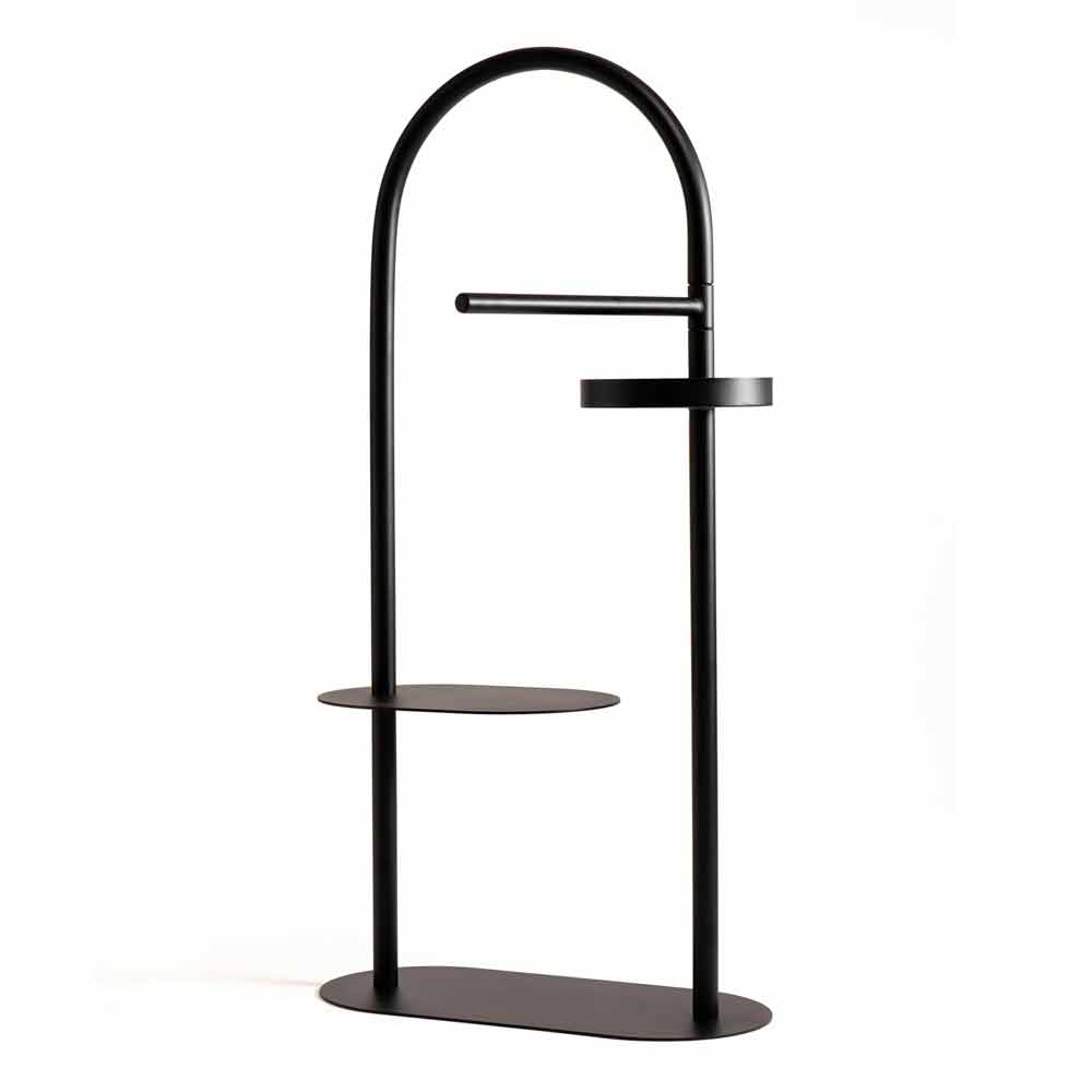 Design valet stand made of steel with 2 Made in Italy shelves.