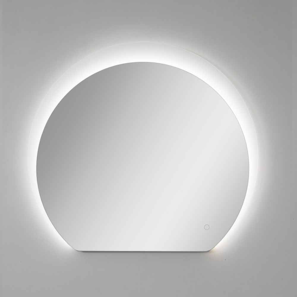 Wall-mounted bathroom mirror with sandblasted decoration and Made in Italy LED.