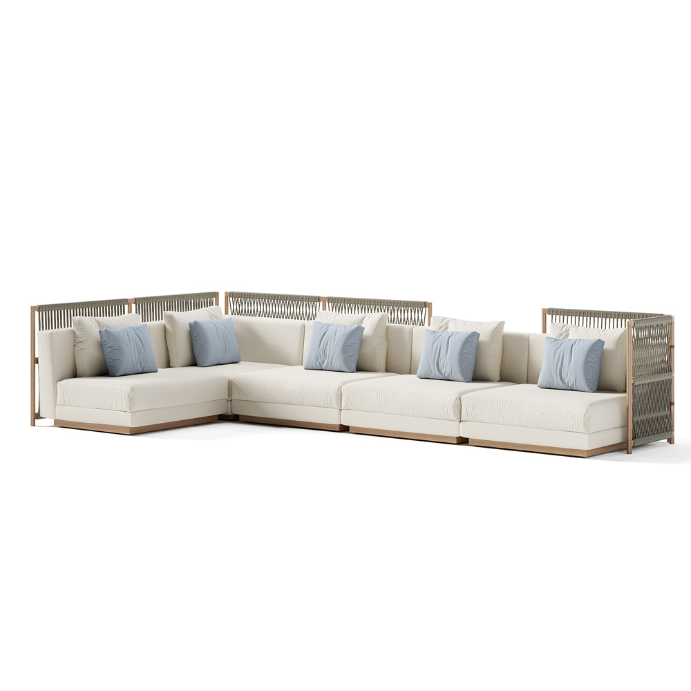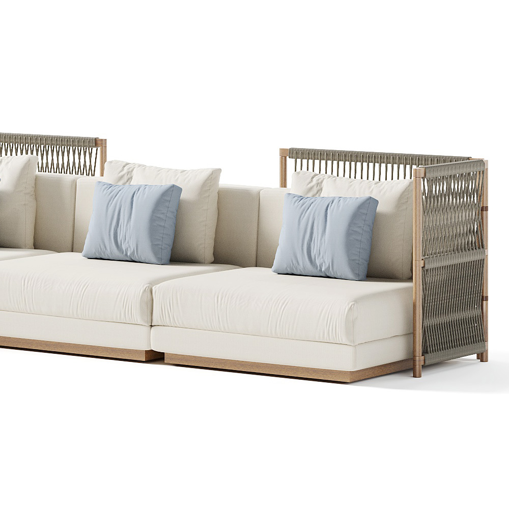 Composition of garden sofa with upholstered cushions in Made in Italy fabric