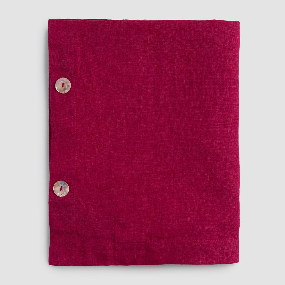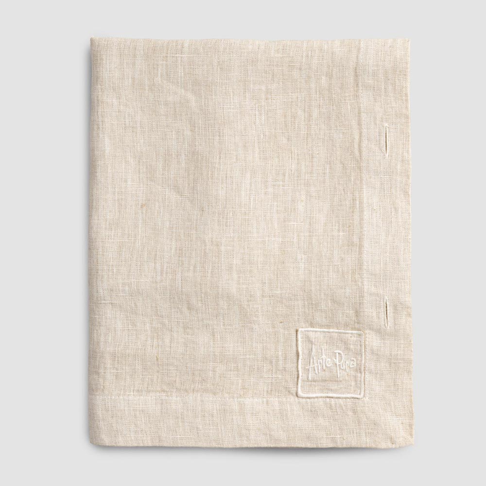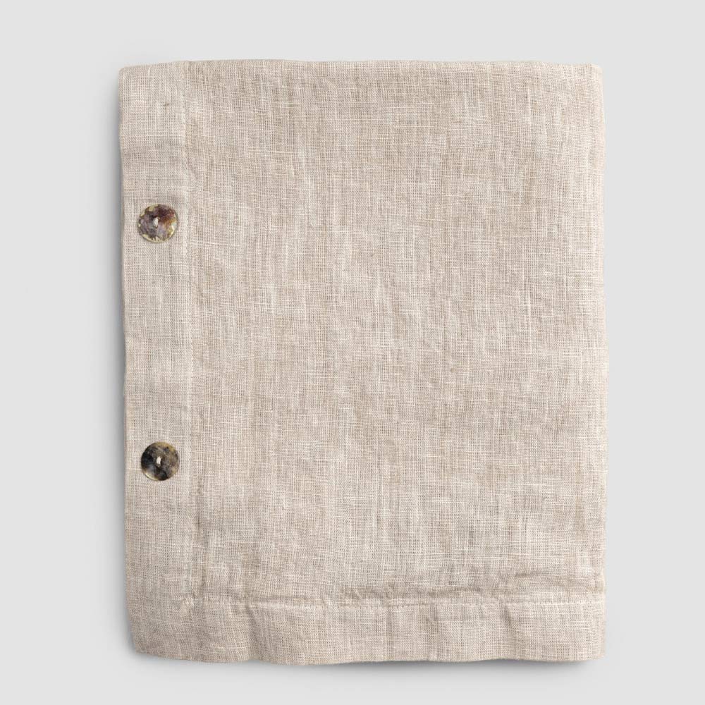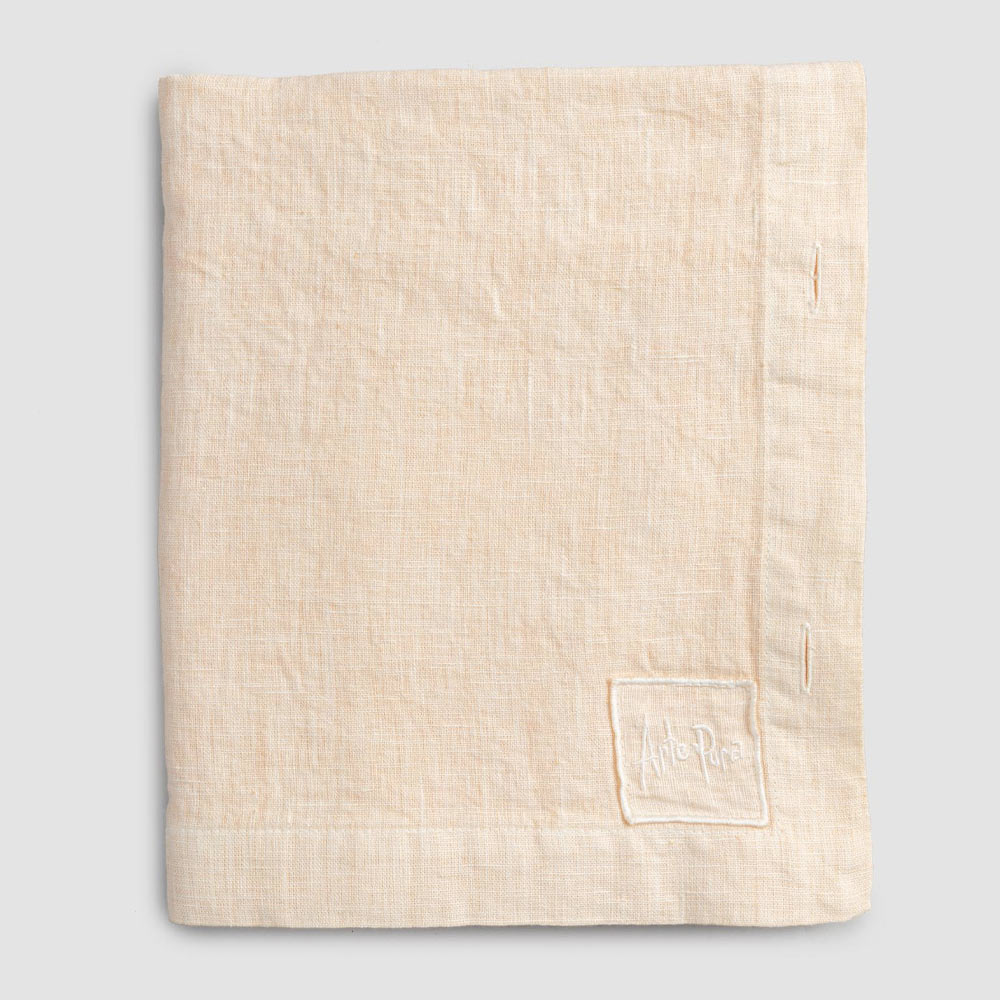 Modular rectangular linen tablecloth with mother-of-pearl buttons, handmade quality made in Italy.