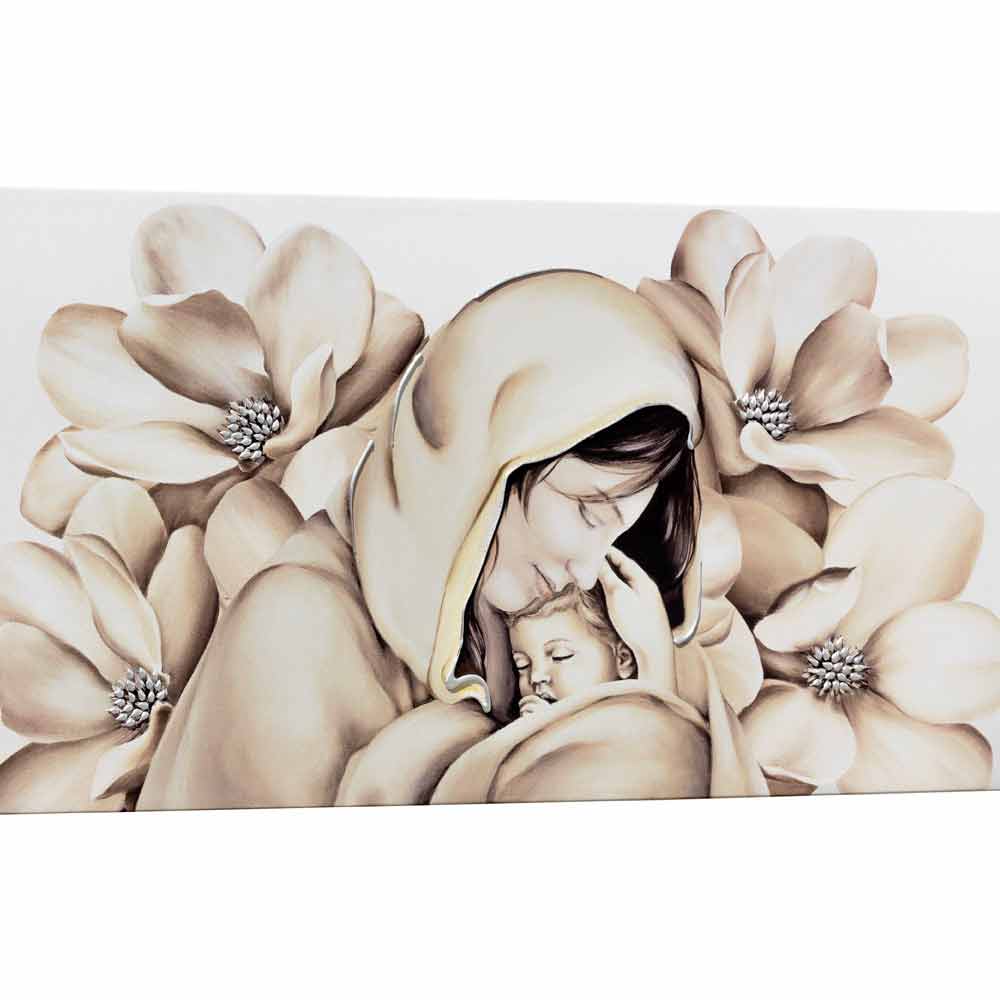 Sole is a wall picture, with a modern and original design depicting motherhood,  with beige flowers ndecorations.