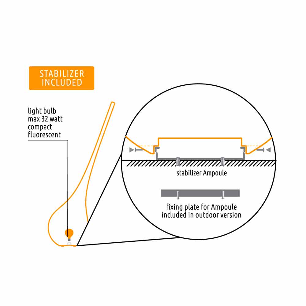 Its majestic design is not a giant with clay feet: Ampoule XL is solidly anchored to the ground thanks to the fixing bracket and the ballast which helps to give it further stability.