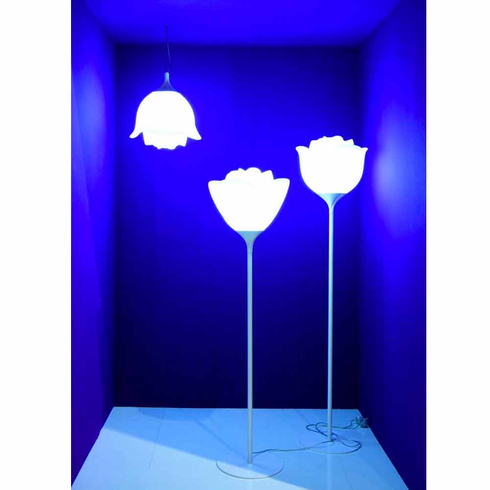 Baby Love , an ornamental lamp with a stylized pink profile can take on different forms: an original floor lamp available in various heights, an elegant floor lamp, a ceiling chandelier, a wall lamp and an outdoor lamp in the Waterproof and Garden versions, where its design is designed. to favor the more rapid and complete disposal of rainwater; Baby Love is available in different shades of color and illuminated by a low energy consumption lamp.