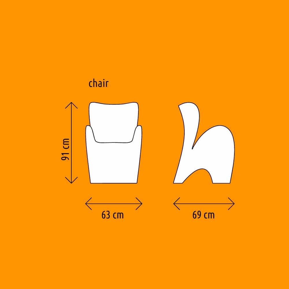 The Lily line, made of printed Poleasy®, includes a chair, armchair and sofa of great lightness. To eliminate rainwater, the chairs have holes between the seat and back, while the armchair and sofa are equipped with side drain systems.