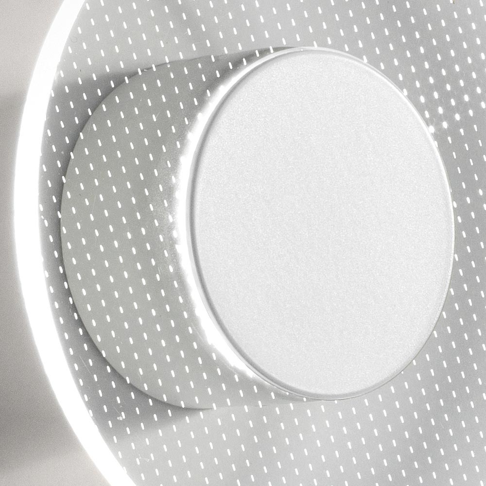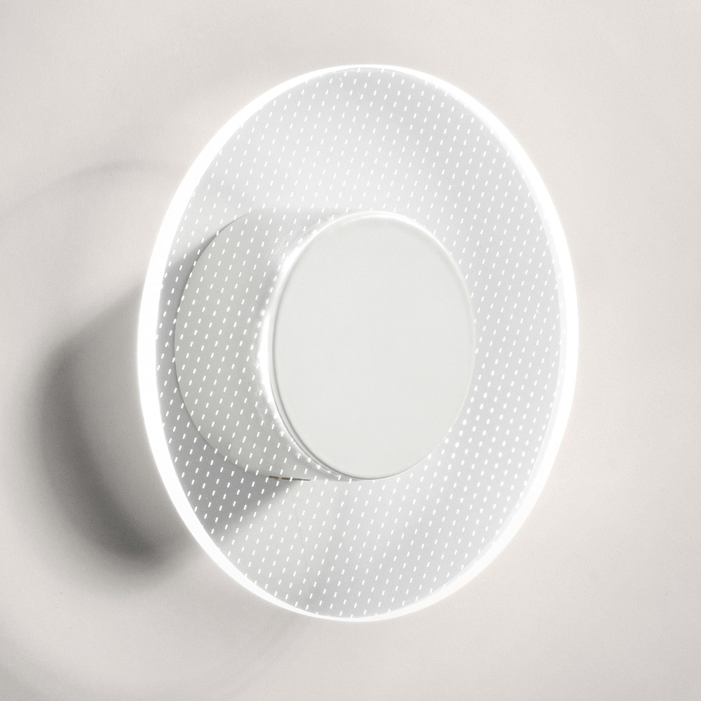 Indoor wall light made with a metal core and a plexiglass (PMMA) structure with micro-dot processing that allows for greater light diffusion.