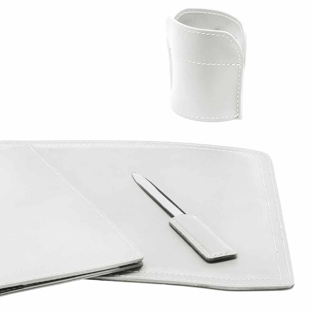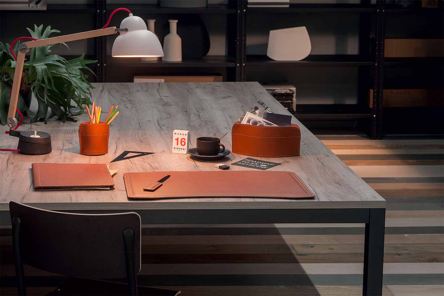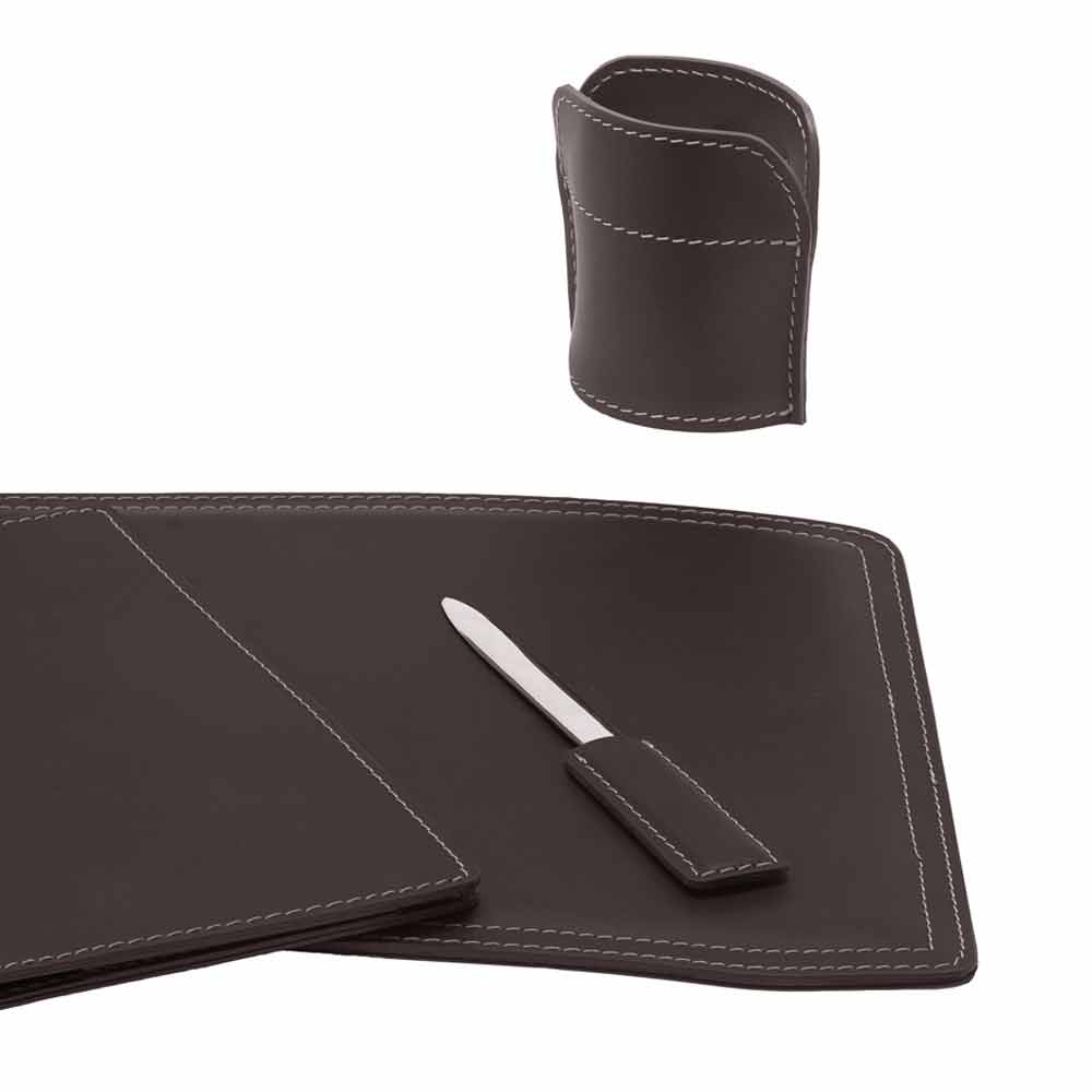 Desk accessories in regenerated leather, set consisting of 5 pieces, Made in Italy Brando