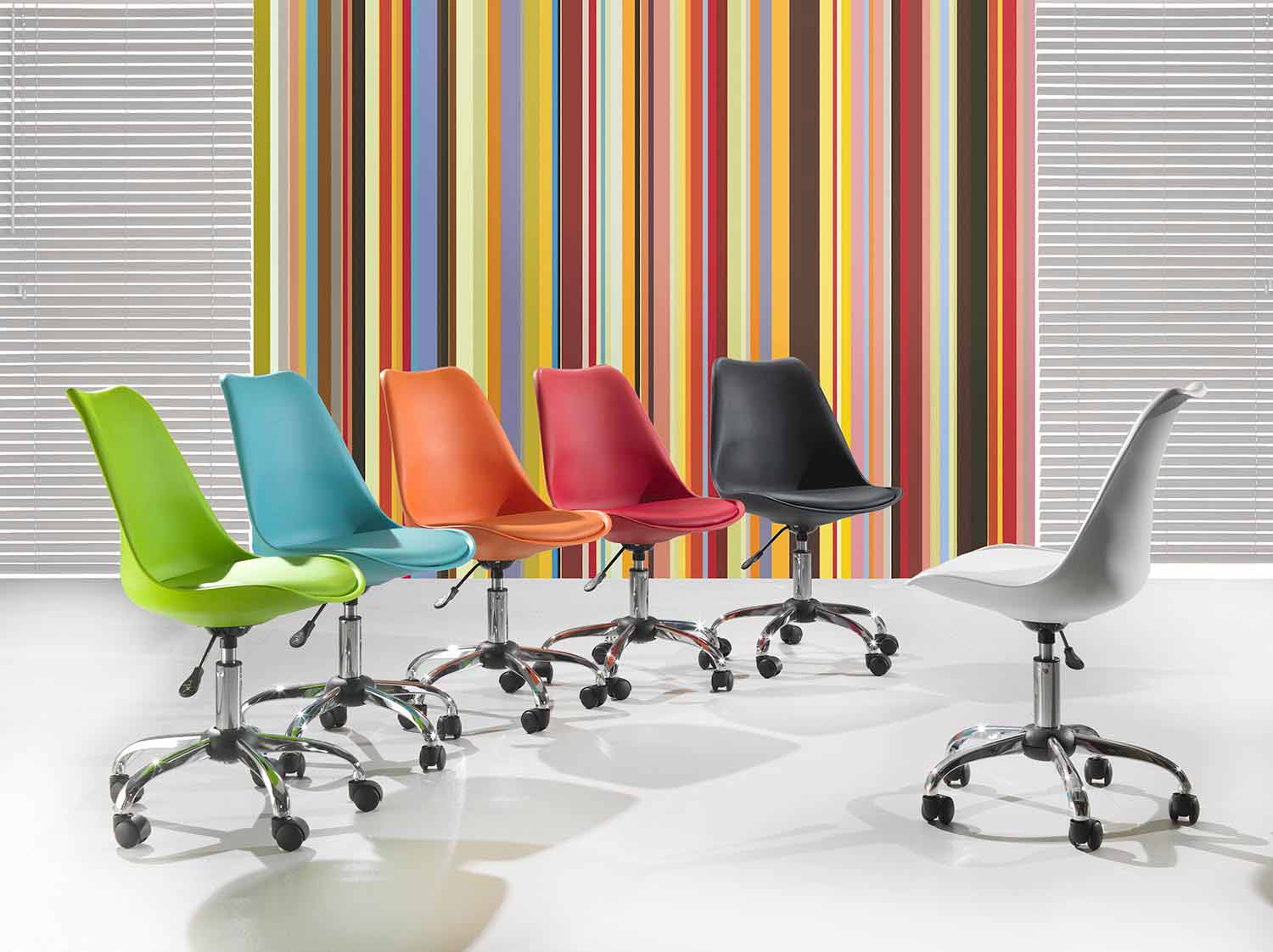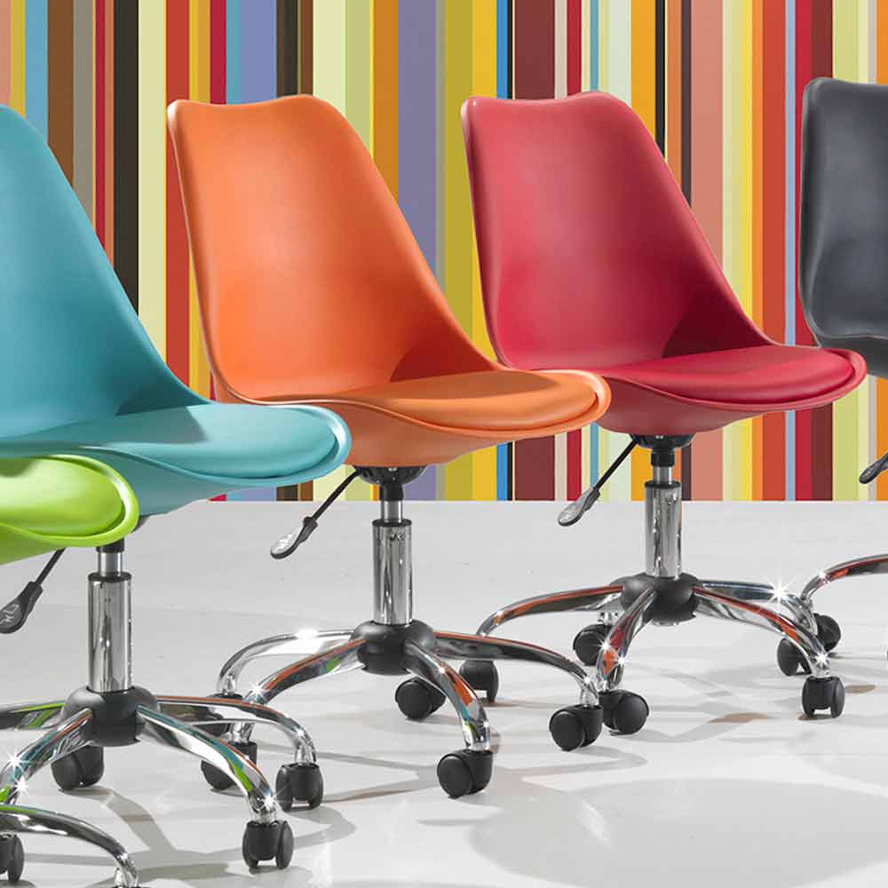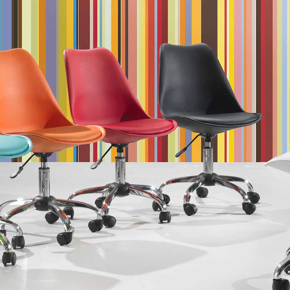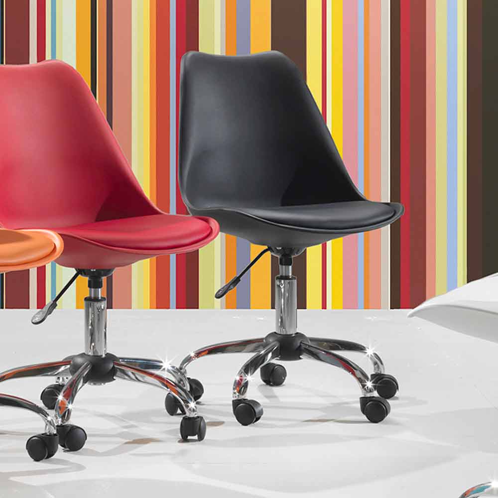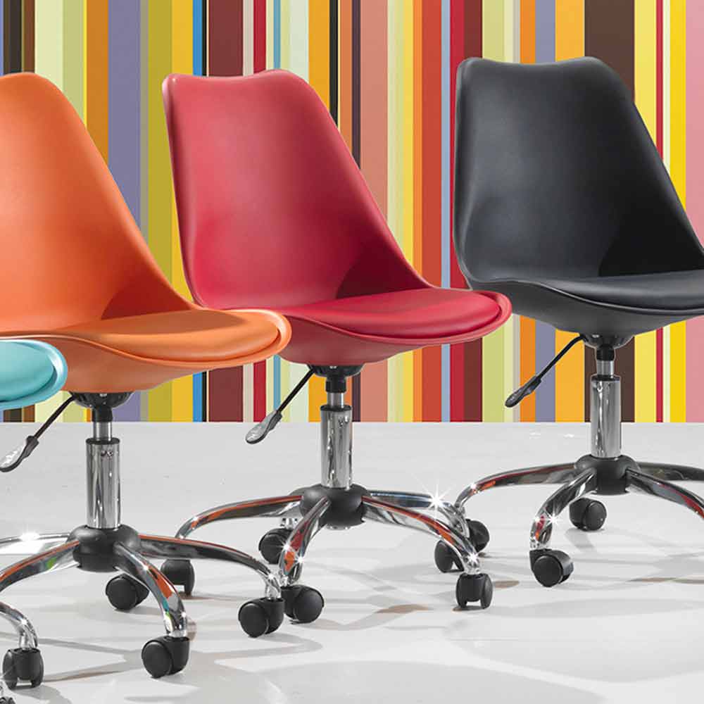 The Loredana office chair is ideal for ensuring maximum comfort during working hours thanks to its seat with gas lift. Produced with a polypropylene seat and made comfortable by an eco-leather pad matching the seat and chromed metal base with wheels.
