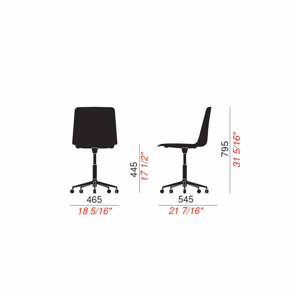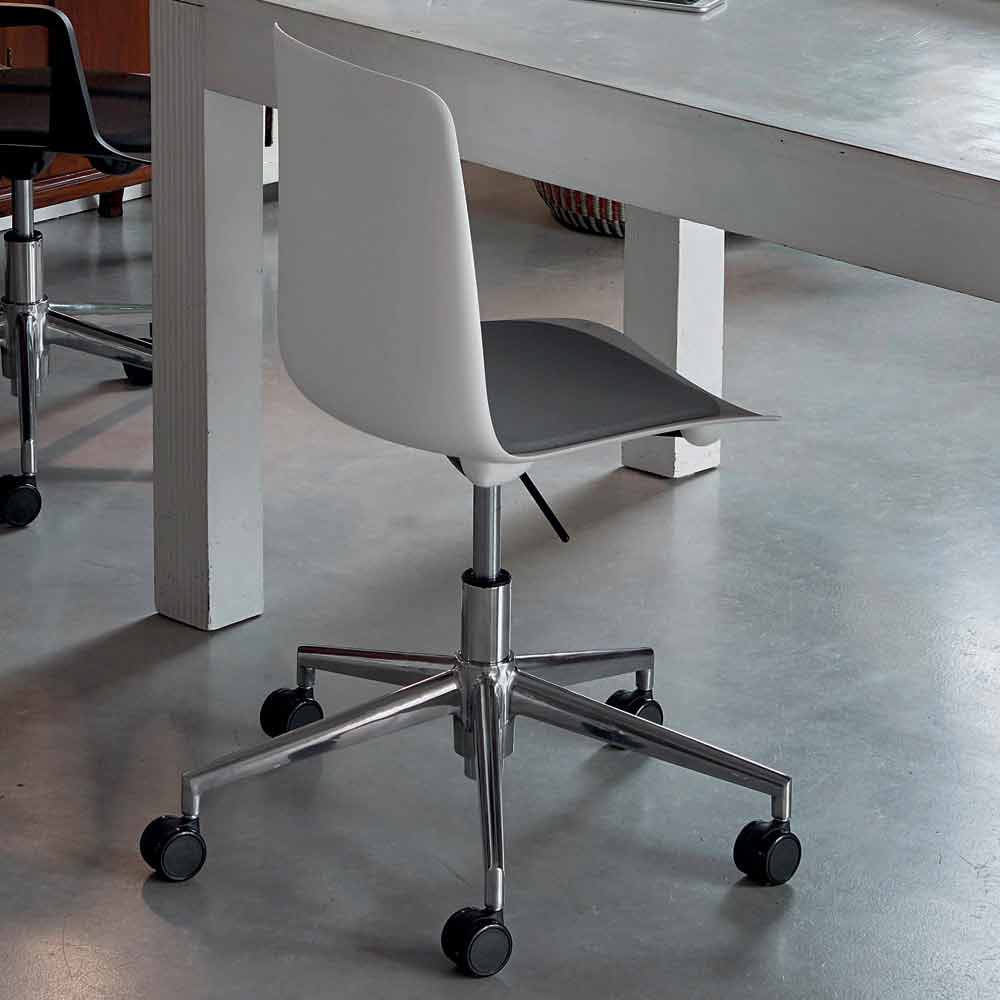 Charita consists of a polypropylene seat available in 7 different colors and a polished aluminum structure also equipped with a swivel base for greater comfort and greater functionality.