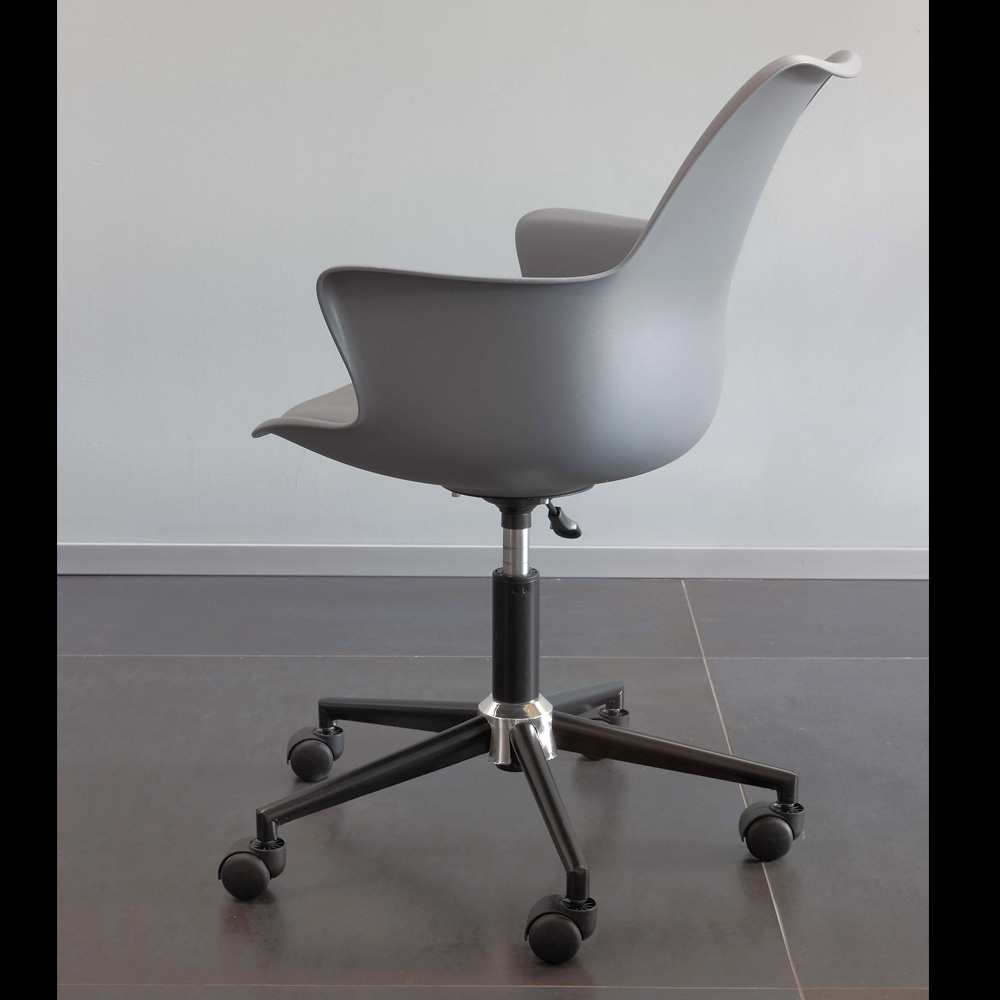 polypropylene. Soft and enveloping lines characterize the seat of this chair which aims to provide comfort and convenience. Thanks to the possibility of adjusting the height and the swivel wheels it is possible to adapt it to better meet the different needs of the person, becoming a comfortable and functional chair for everyone.