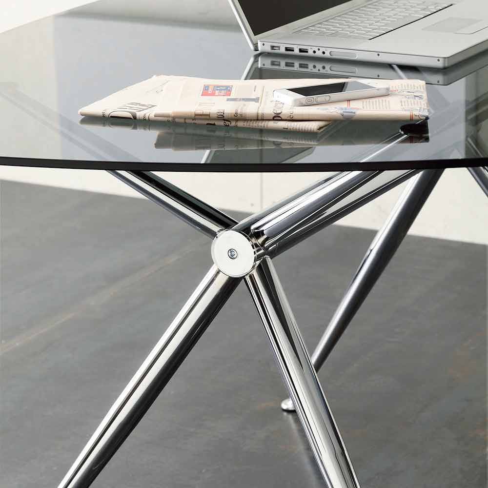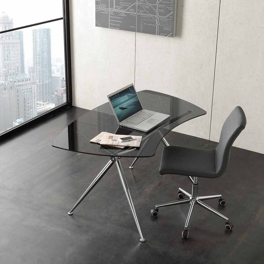 Office desk made in Italy with shaped glass top (10mm thick) and chromed finish metal structure.