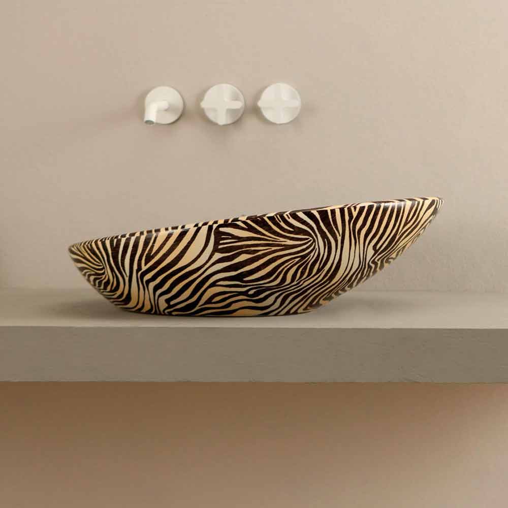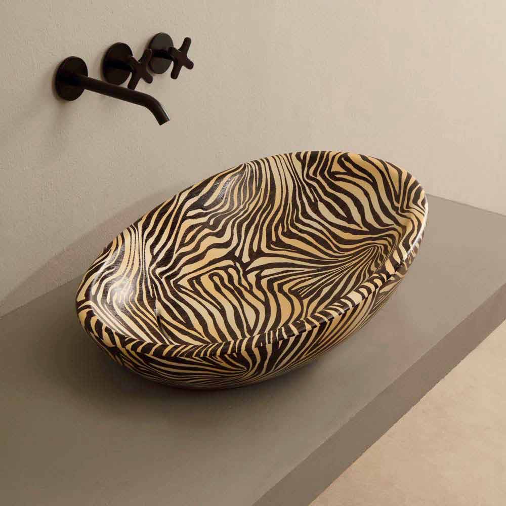 Orange zebra ceramic countertop washbasin made in Italy Glossy