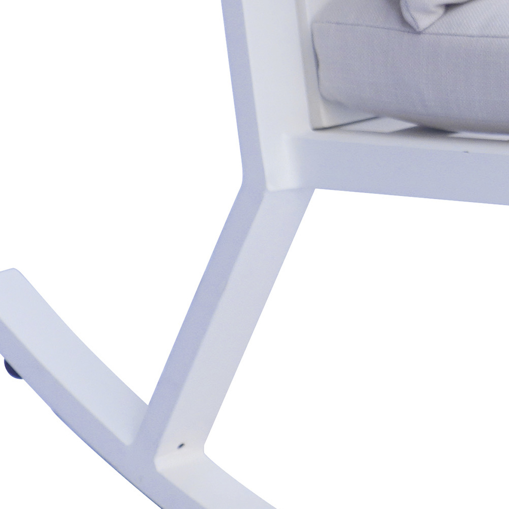 Bring a touch of modern elegance and sophisticated relaxation to your garden with this contemporary rocking chair. Designed to blend style and comfort, this chair is crafted with a sturdy aluminum frame that ensures durability and easy maintenance. The minimalist design is paired with thick, soft cushions, providing superior comfort and adequate support for long periods of relaxation.