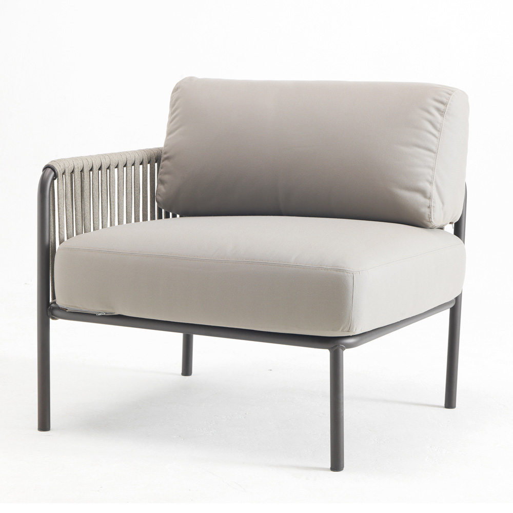NB : The armchair, the rope and the cushions are available in a wide range of colours. The removable armrest can be placed on the right or left.