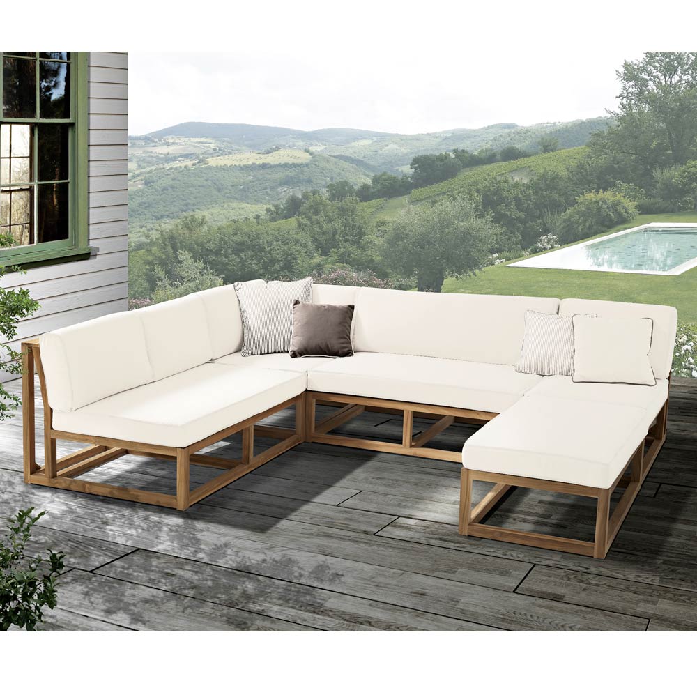 natural teak structure and cushions in outdoor
