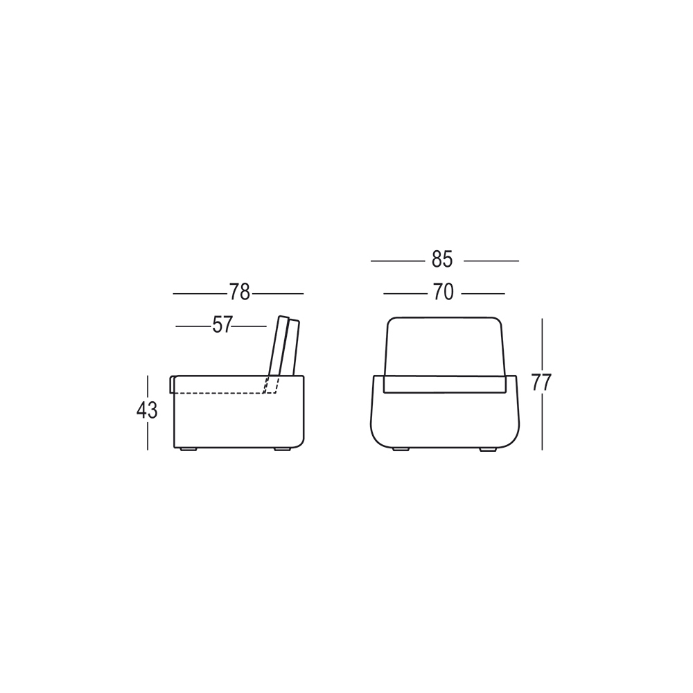 opaque polyethylene characterized by excellent resistance to the sun, heat and shocks. Thanks to its modern and elegant design, this armchair is the ideal solution for environments that need a refined touch without neglecting the functional aspect of comfort.