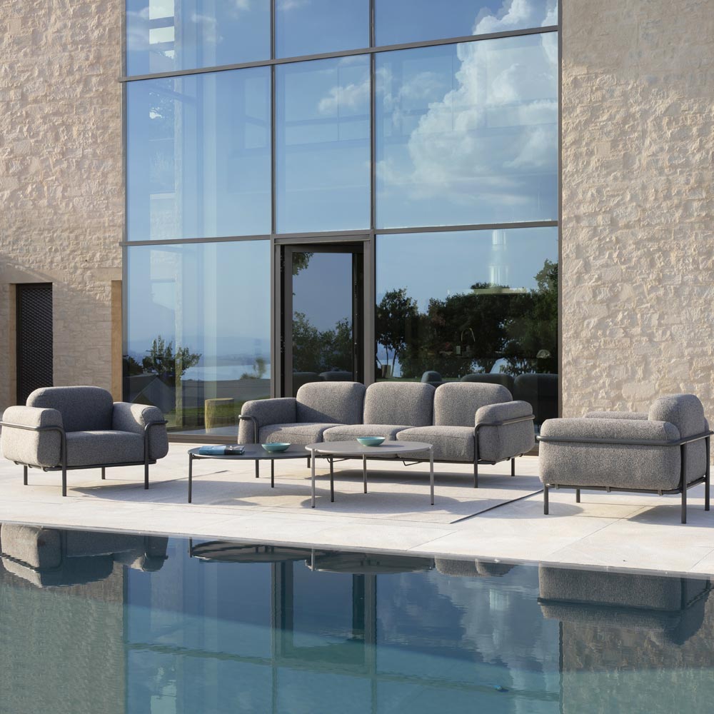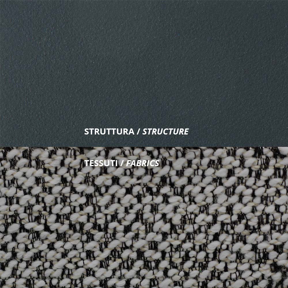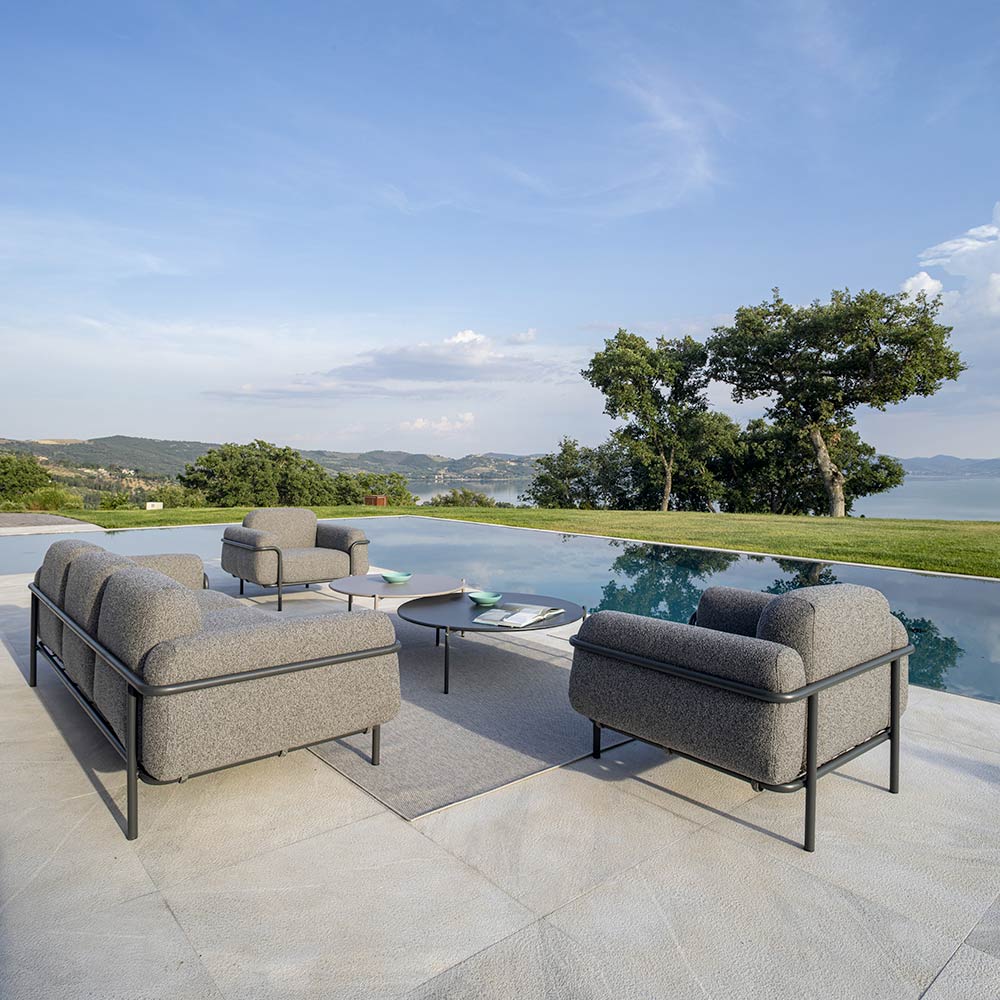 resistance of the material finish to corrosive atmospheric agents such as salt or acidity of rain. The cushions are made of material resistant to UV rays and water that maintains the color for a long time.