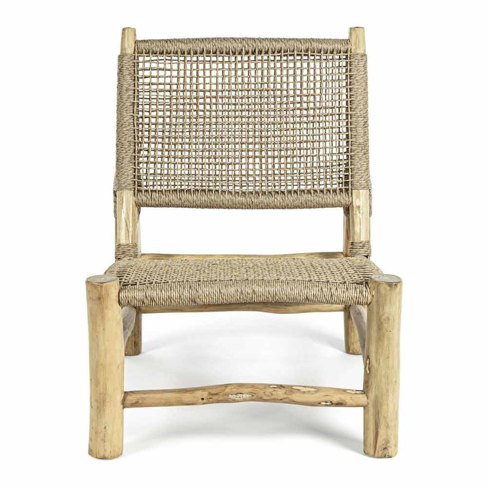 Outdoor armchair in teak branches with seat and back in fiber, 2 pieces.