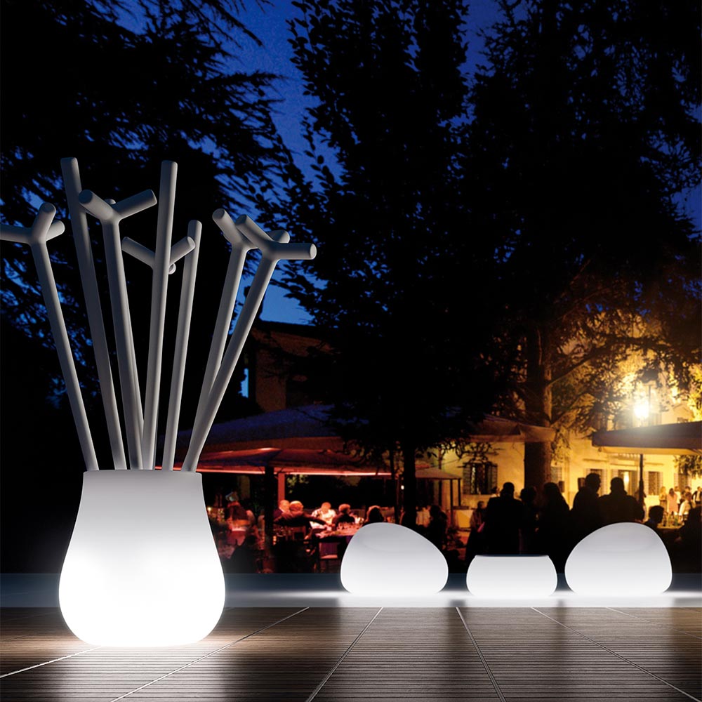 This outdoor armchair is characterized by soft lines and an enveloping shape which, together with the LED lighting, make it a real design object. Perfect for furnishing with style and taste and at the same time to give light to outdoor environments that need character and personality. Entirely produced in Italy with raw materials chosen in order to ensure a robust and high quality final product, its structure is made of polyethylene characterized by excellent resistance to the sun, shocks and heat.