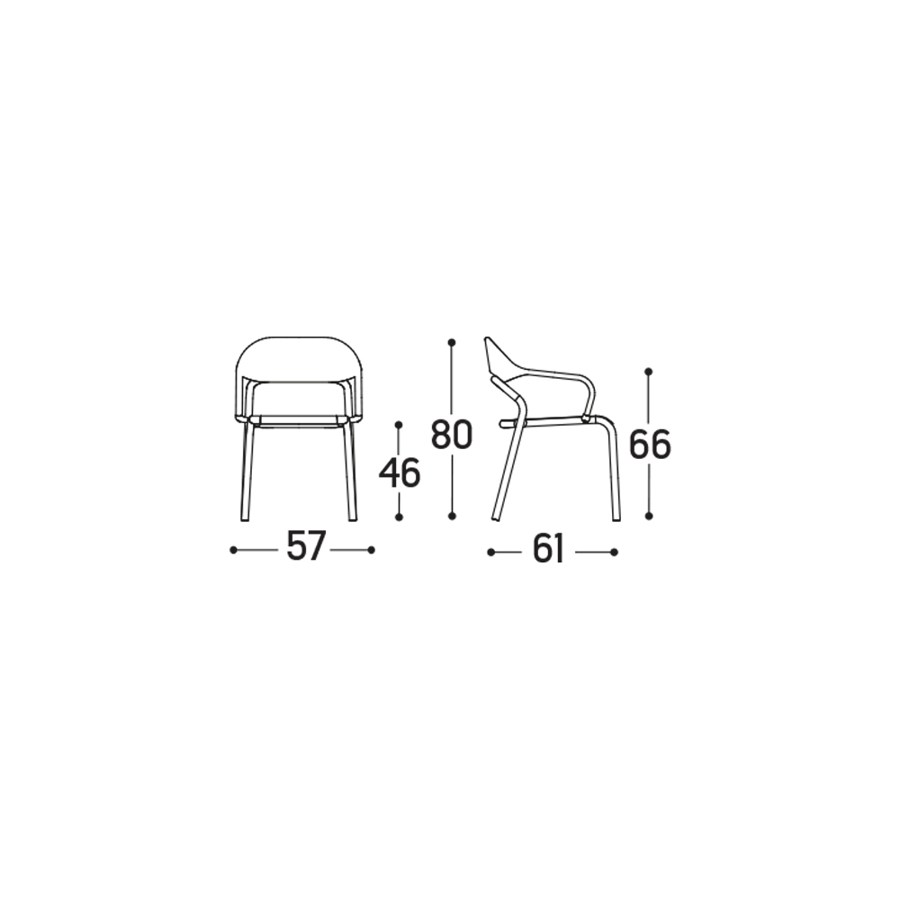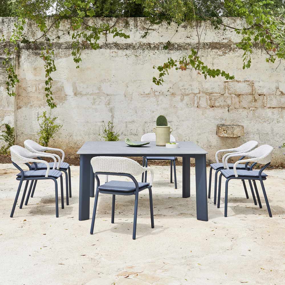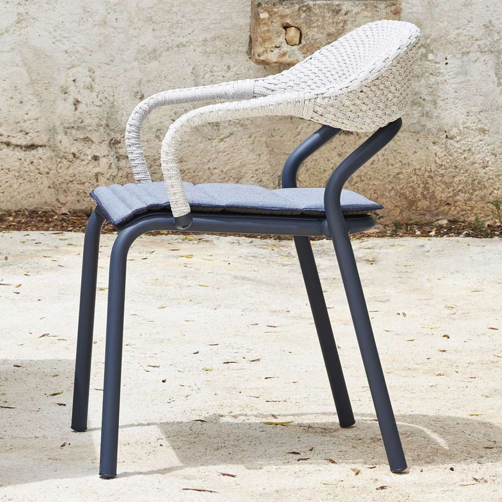 Stackable garden armchair in painted aluminum with seat cushion Made in Italy.