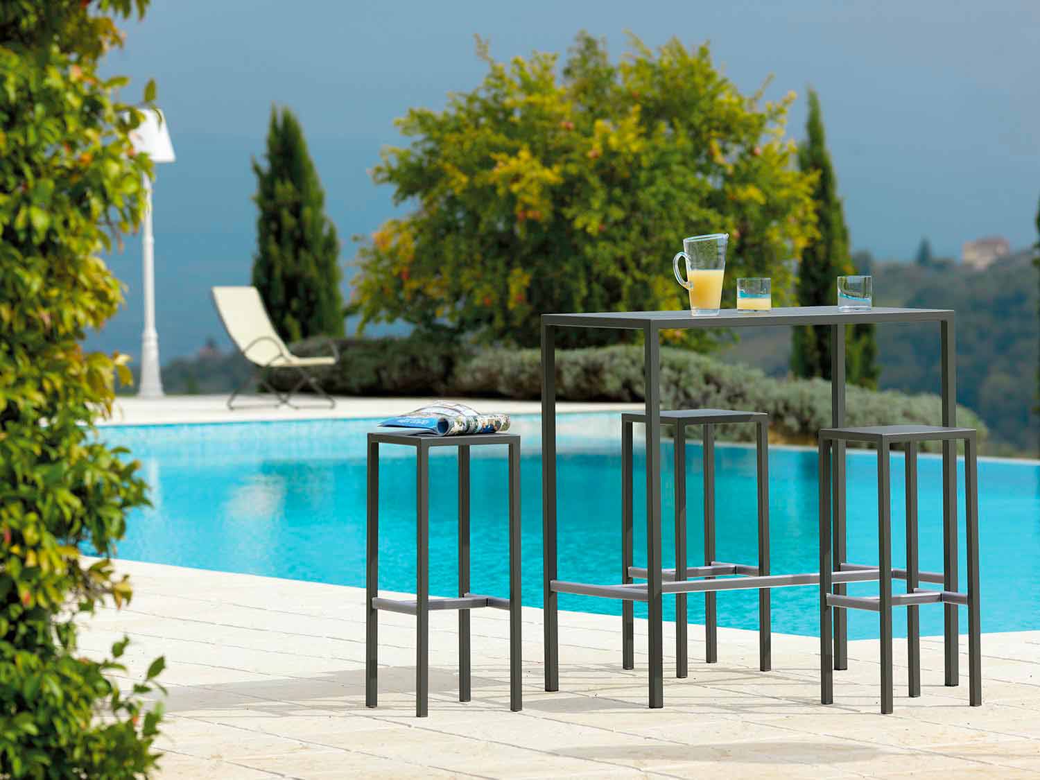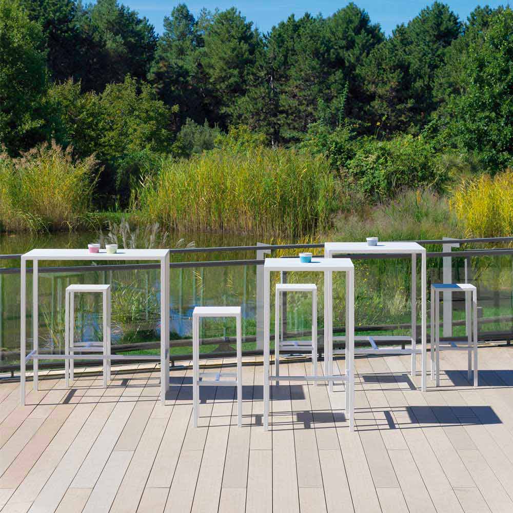High outdoor bar stool in powder coated galvanized iron Made in Italy.