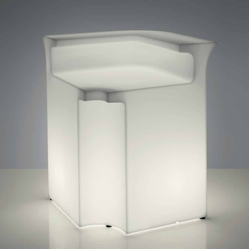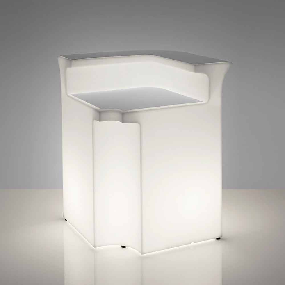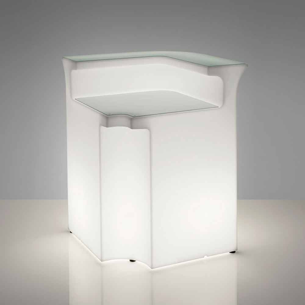 It is made of bright white polyethylene and is suitable for use as a bar counter or as a reception corner even in small spaces, while still guaranteeing originality thanks to the light point it offers. It can be used both individually and in combination with other luminous furnishing accessories from the Break Line and Break Bar lines, it will be able to make the difference as a unique product capable of making your environment a trendy place outside the traditional schemes.