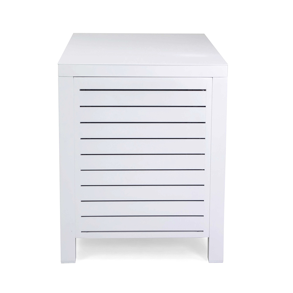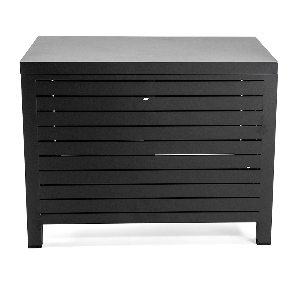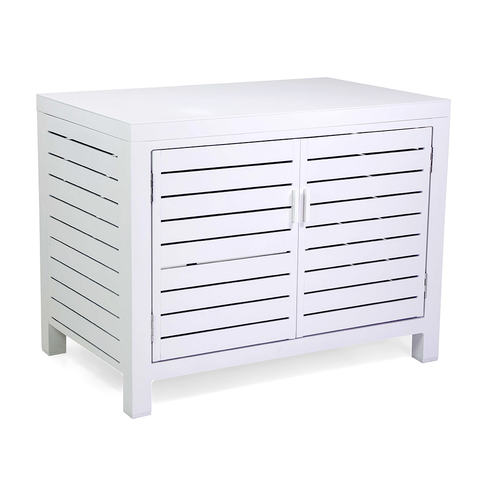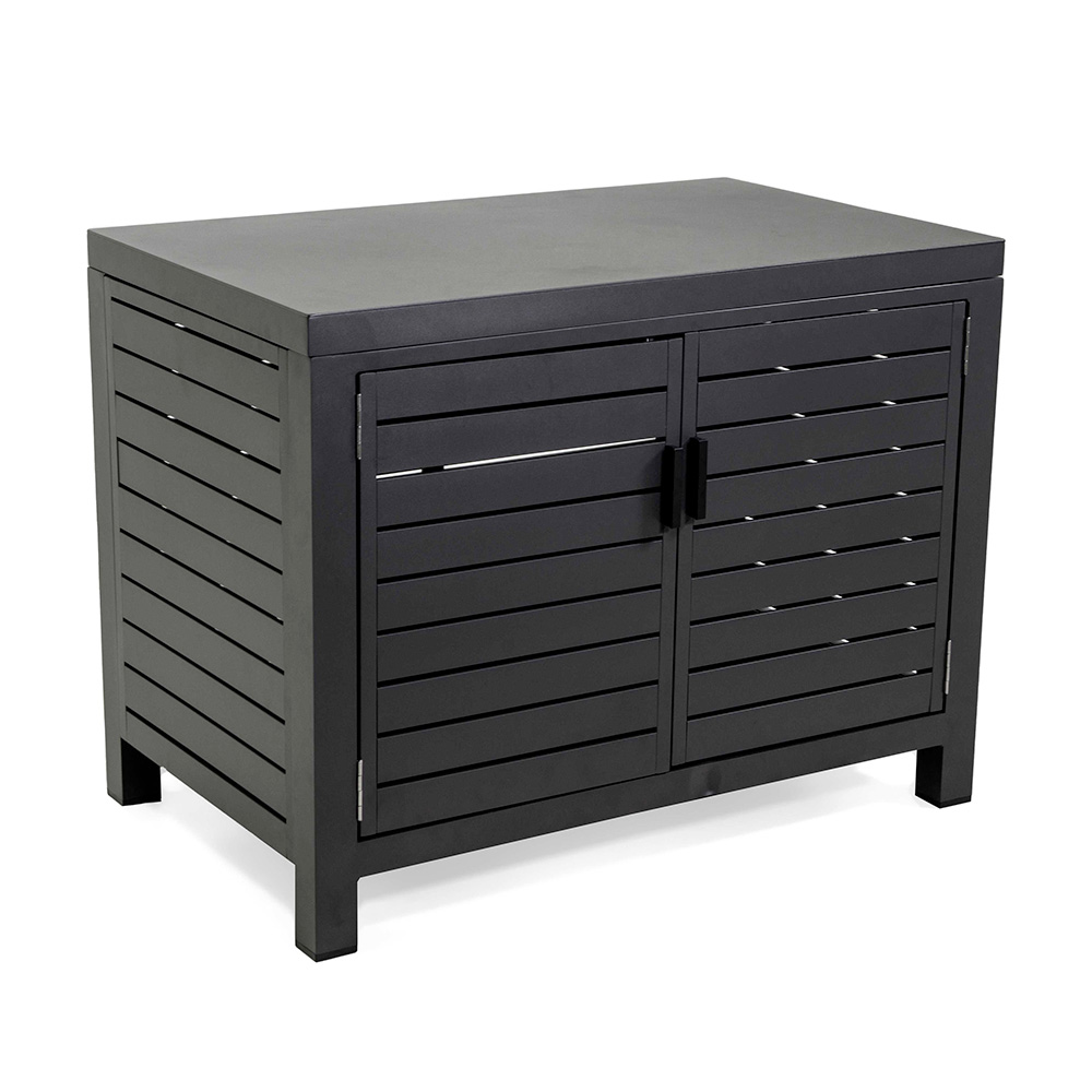 Add a touch of modern elegance to your outdoor space with this sophisticated aluminum cabinet , which will fit perfectly into any outdoor setting. The clean slatted design creates a visually appealing effect, making it a functional and decorative centerpiece.