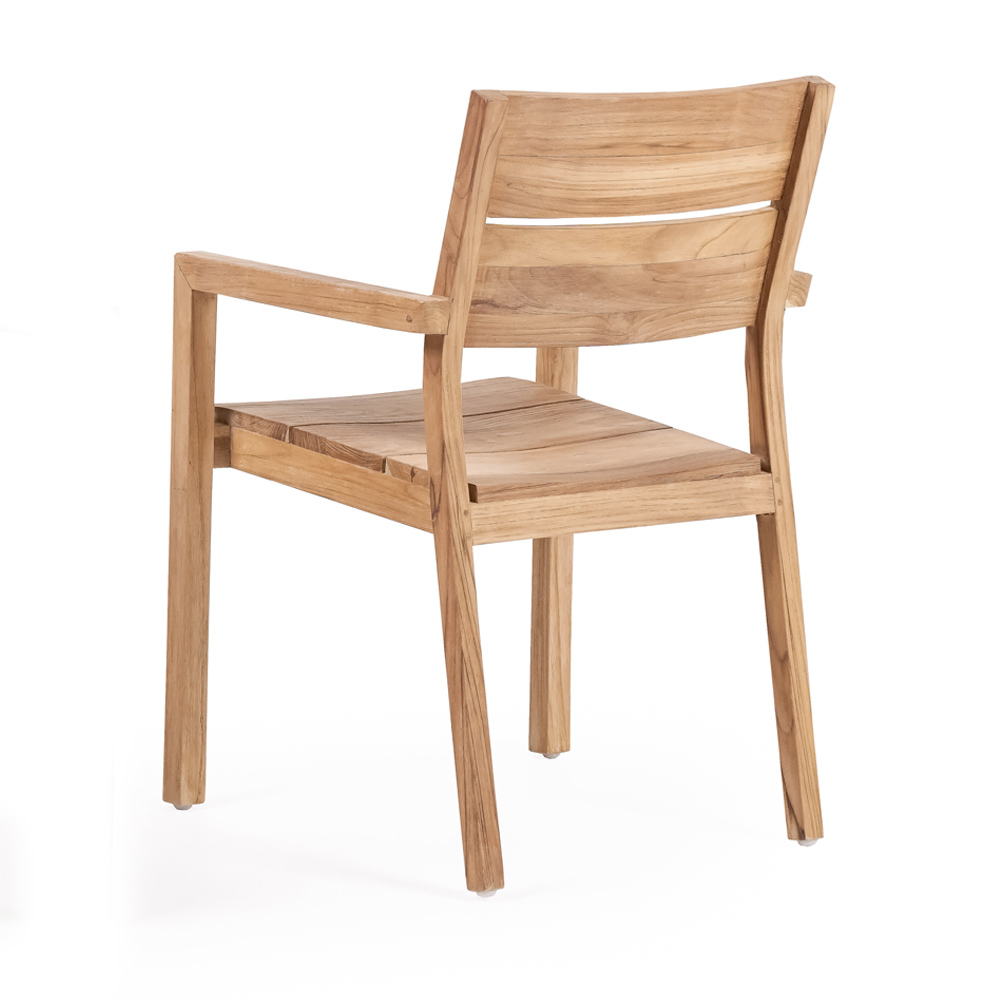 Garden chair with armrests entirely Ā with teak wood structure in natural brushed finish . This product with refined and essential lines is perfect for all those who love the modern and minimalist style and for organizing their outdoor or sheltered spaces in a practical way.