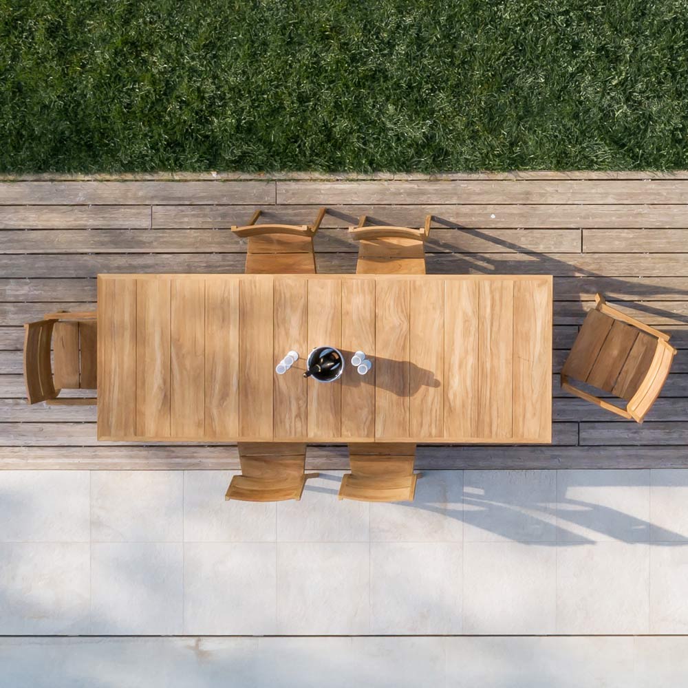 This design and functional chair becomes a simple element but with harmonious proportions suitable to be inserted in any outdoor environment such as terraces, verandas, gardens or poolside to give a charming atmosphere. The teak wood used for the construction guarantees quality and resistance even with the passage of time and makes this furnishing accessory perfect for any situation and occasion of use. The brushed finish highlights the grain and natural characteristics of the teak.