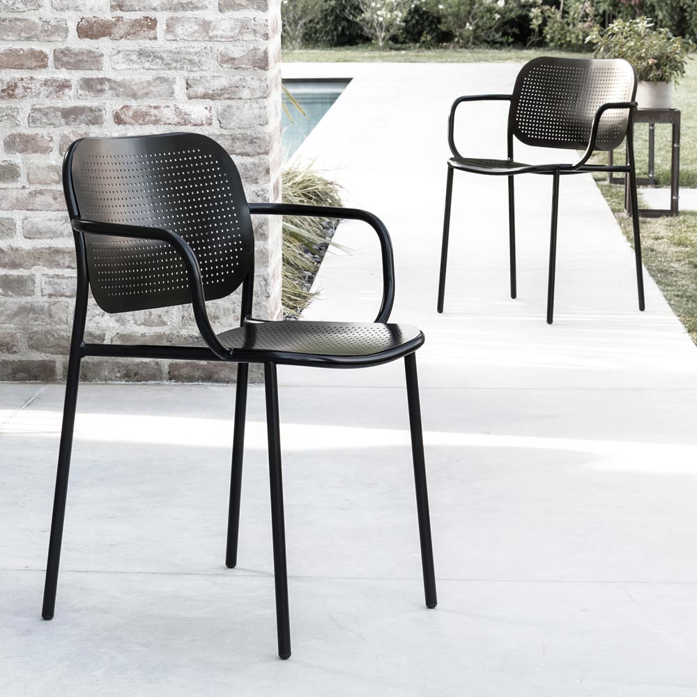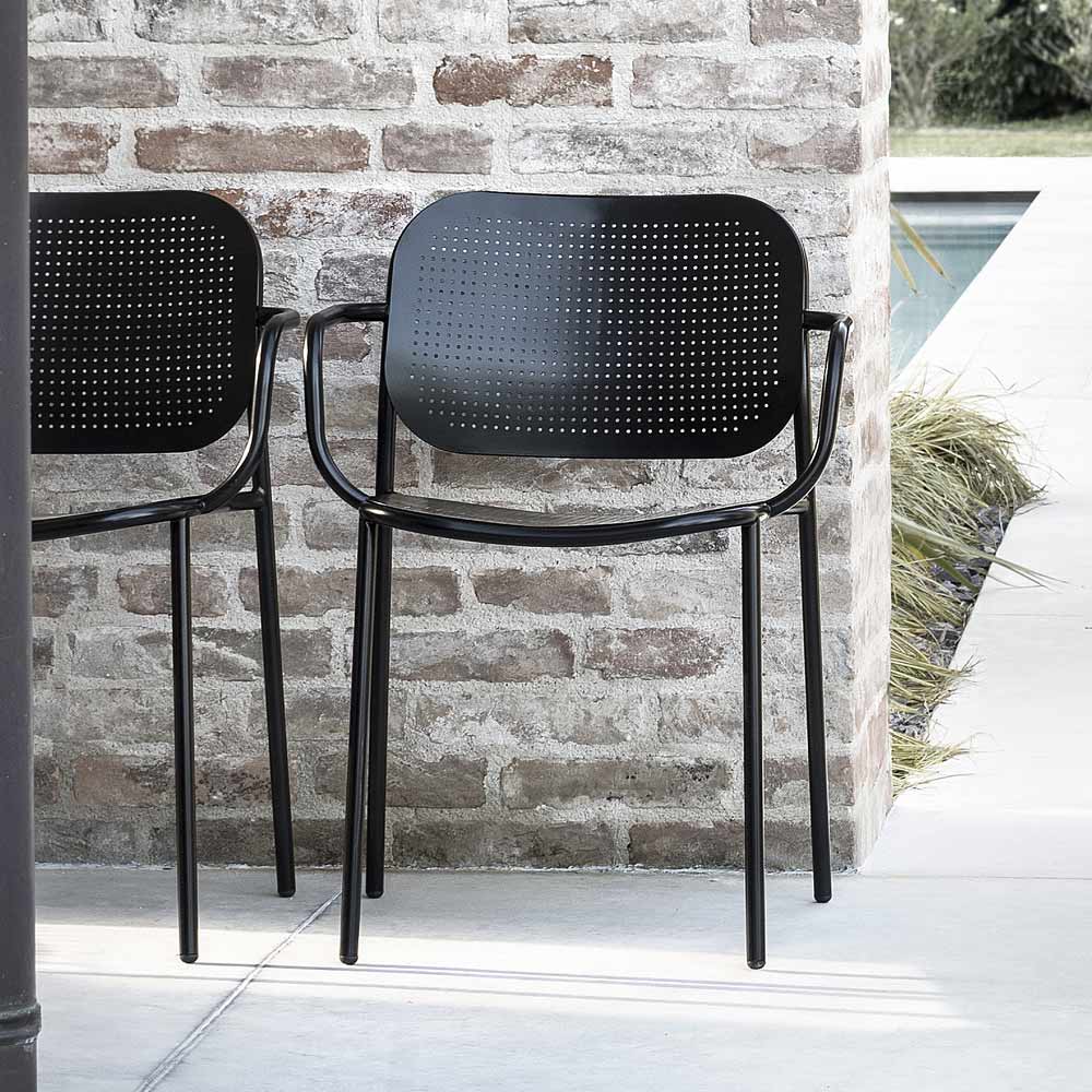 Garden chair in painted metal with armrests Made in Italy, 2 pieces.