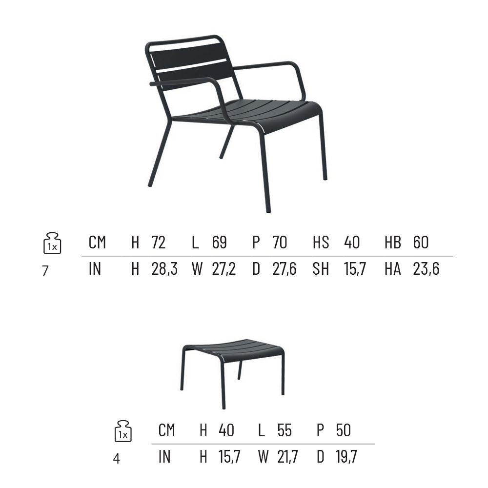 • chaise longue : L 69 x D 70 x H 72 cm;