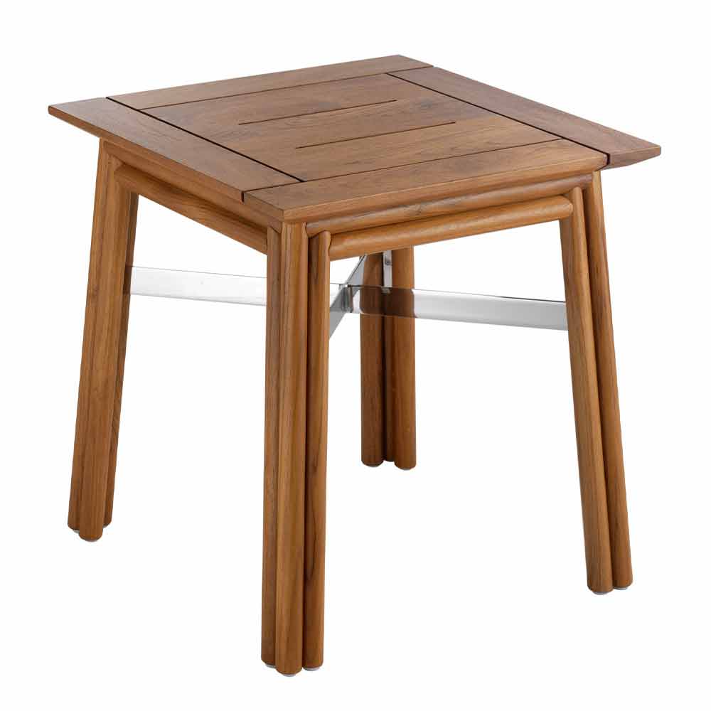 Square design outdoor side table in black or natural wood, made in Italy.