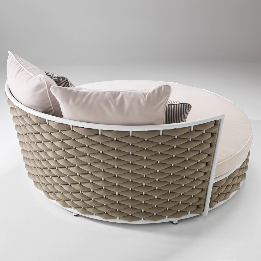 The structure of this daybed is easy to handle and sturdy but at the same time maintains a clean design. Its modern style gives it a strong character making it perfect for furnishing outdoor spaces both in private and contract environments.