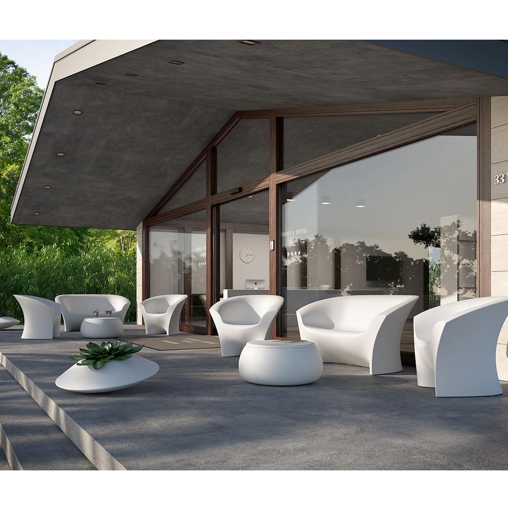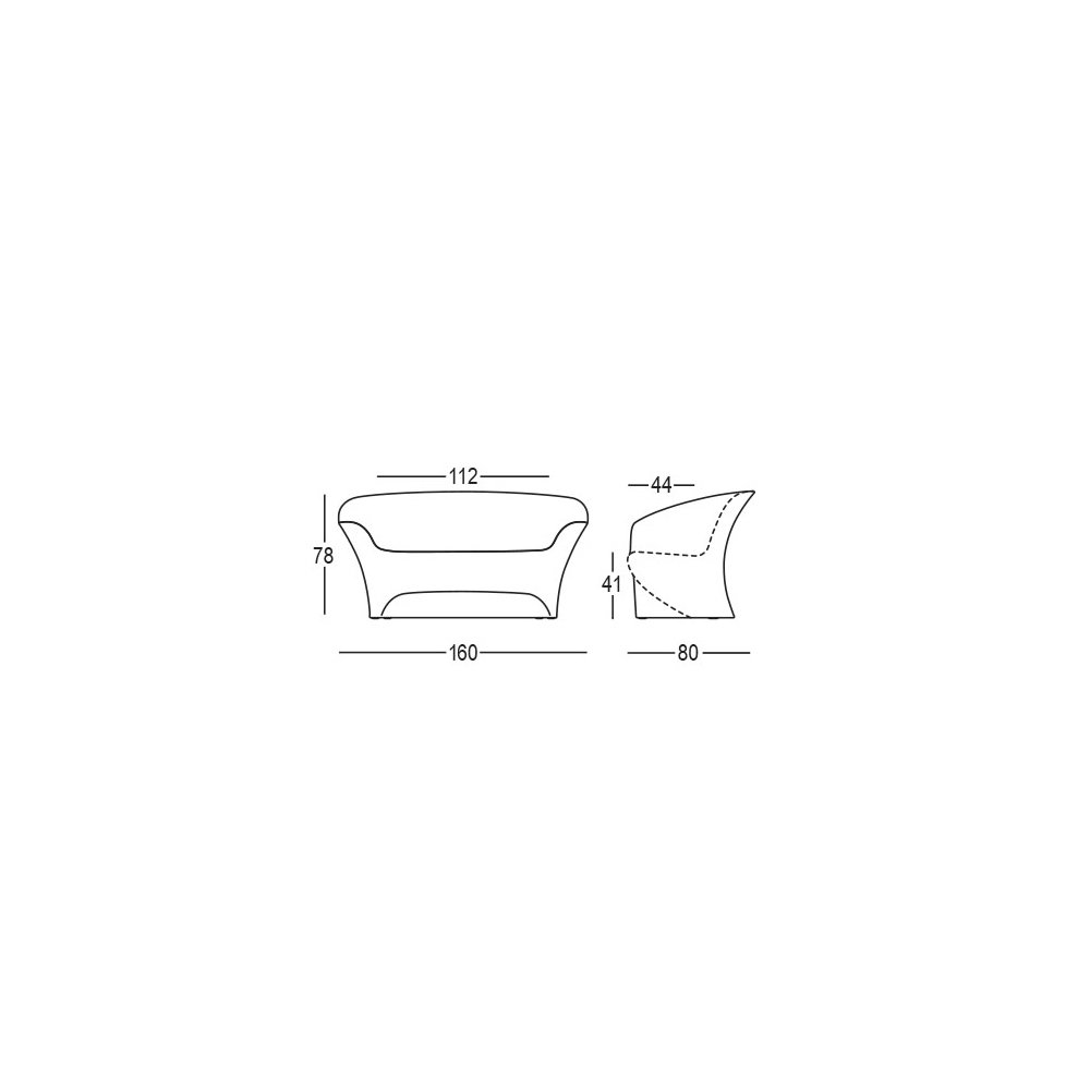 outdoor sofa is characterized by light and delicate lines but at the same time is equipped with excellent stability thanks to the chosen material, which ensures a robust and high quality final product. Entirely produced in Italy, this product is made of polyethylene available in the opaque version characterized by excellent resistance to the sun, shocks and heat or in the resistant and bright lacquered version that allows you to create plays of light and reflections that become protagonists inside of the environment. Ideal for decorating any outdoor environment with taste and refinement without neglecting the functional and practical aspect.