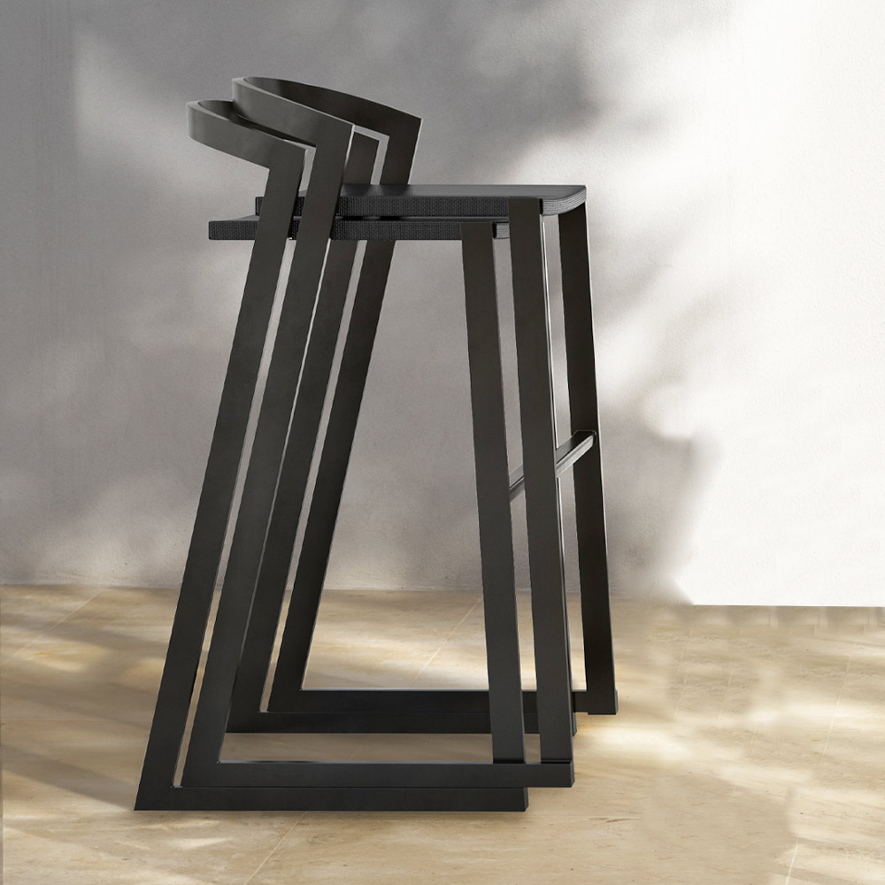 It is the detail of the cast aluminum leg that gives this stackable outdoor stool the refined design that distinguishes it and personalizes it in its formal composure.