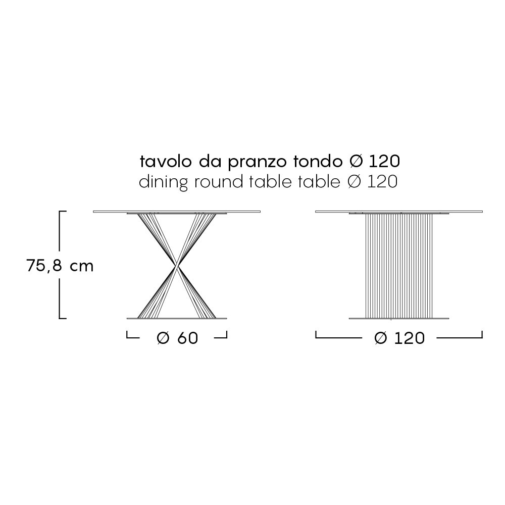 Made in Italy outdoor dining table composed of a cast aluminum structure and a round top in marble-effect porcelain stoneware. The base represents the most original detail giving this table a strong modern character and a refined and formal design .