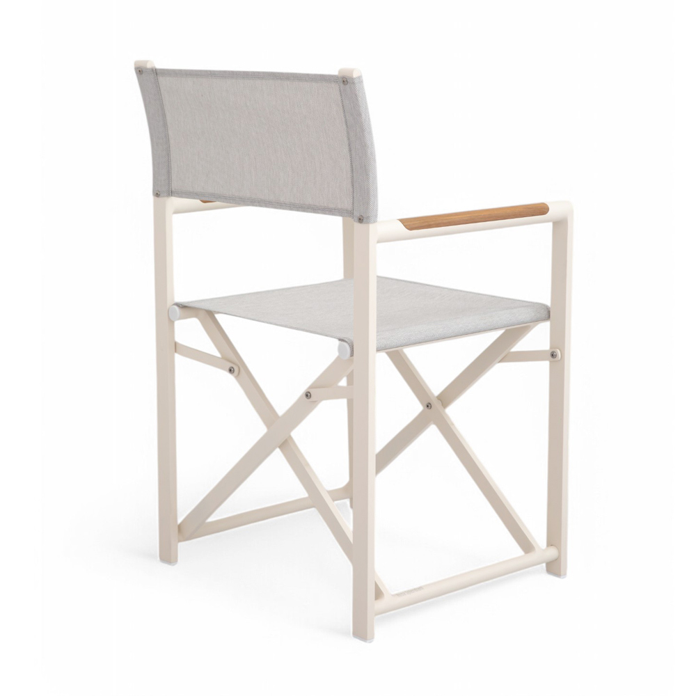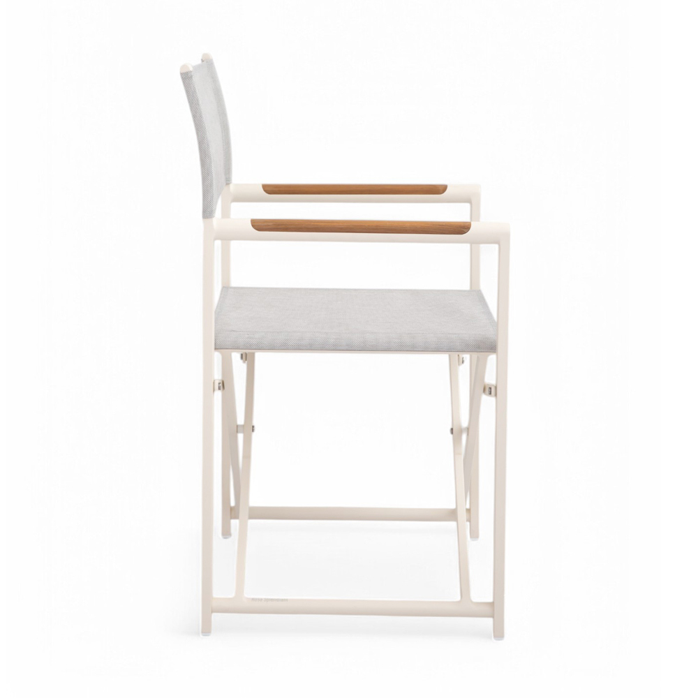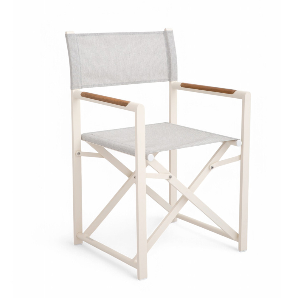 The textilene seat and backrest ensure maximum comfort even on the hottest days, while the natural wood details on the armrests add a touch of refinement. The folding design makes this chair extremely practical and versatile , perfect for dinners in the garden or moments of relaxation on the terrace.