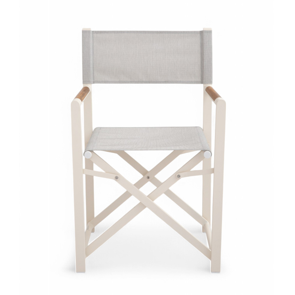 Bring a touch of elegance and practicality to your outdoor space with this outdoor director's chair . Crafted from a sturdy powder-coated aluminum frame, this chair is designed to withstand the elements without compromising on style.