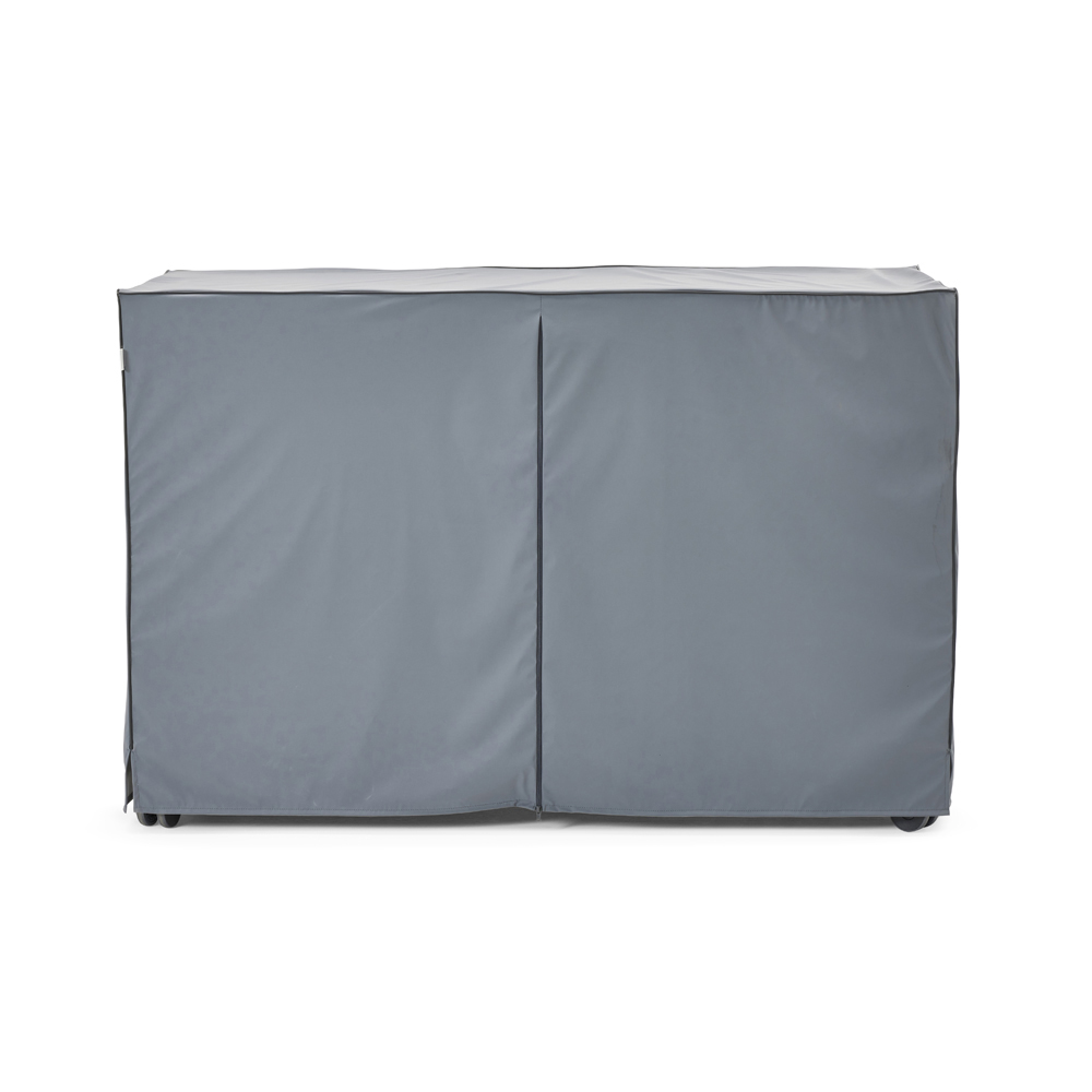 This outdoor kitchen represents the perfect blend of functionality and contemporary design, ideal for turning your every outdoor moment into a unique experience. The powder-coated aluminum frame offers robustness and weather resistance, while the high-quality solid teak inserts treated with Rubio Monocoat Hybrid Wood Protector add a touch of natural elegance and visual warmth.