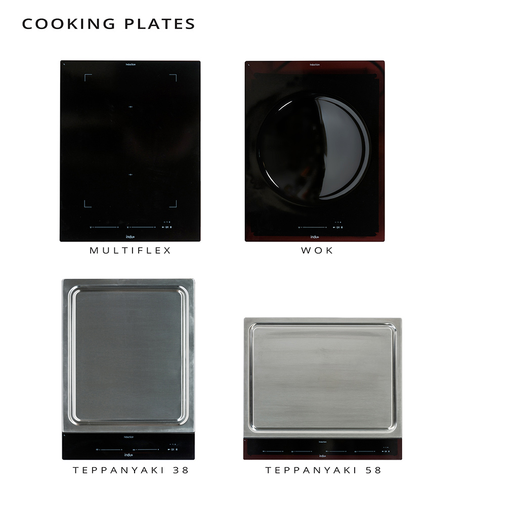 TEPPANYAKI 38: state-of-the-art induction technology - locking touch - Stop & go function - 2 independent thermostatically controlled cooking areas (front and rear) — each 1400 W - touch slider control with direct access to each of 10 heating levels: 0-9 / cleaning level - dynamic temperature display for both cooking zones - cleaning touches dedicated to each zone