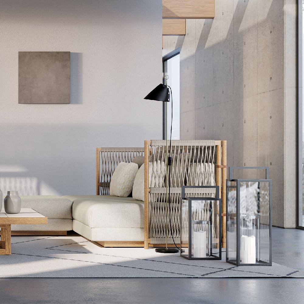 Garden lantern entirely made in Italy with aluminum structure painted in matt black finish with an elegant handmade antique effect. The walls are in transparent glass and the circular handle placed on the end is in the same material as the structure. This lantern is designed to illuminate and decorate outdoor spaces, creating fascinating landscapes of light and a warm and welcoming atmosphere. Thanks to its elegant lines, it is perfect for completing the decor of any environment, drawing inspiration from the charming and typical candlelight atmosphere , reinterpreted in a modern key.
