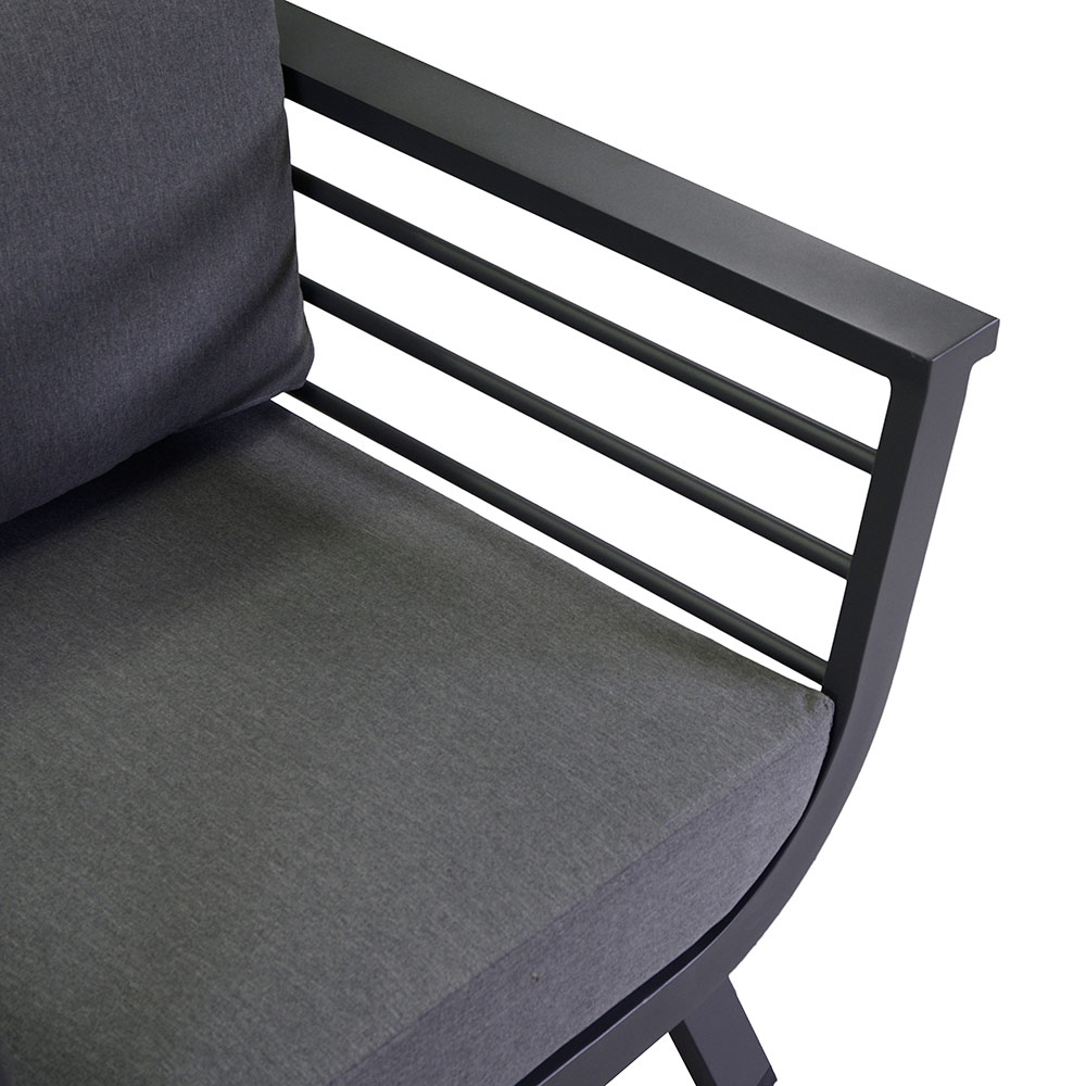 The contemporary design of the chairs with elegant armrests and the sturdiness of the aluminum ensure durability and stability , making this lounge an ideal choice for enjoying countless moments outdoors.