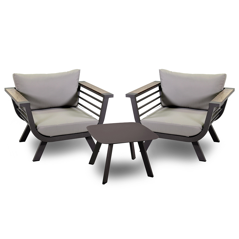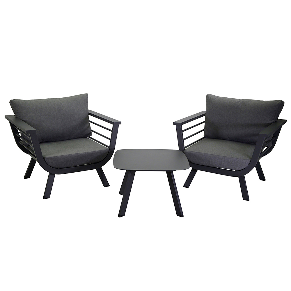 Immerse yourself in comfort and style with this aluminium lounge set , perfect for any outdoor space. This set includes two spacious armchairs with cushions , offering the ultimate in comfort and support. The matching coffee table is ideal for keeping drinks and books within reach, making your outdoor space a true oasis of relaxation.