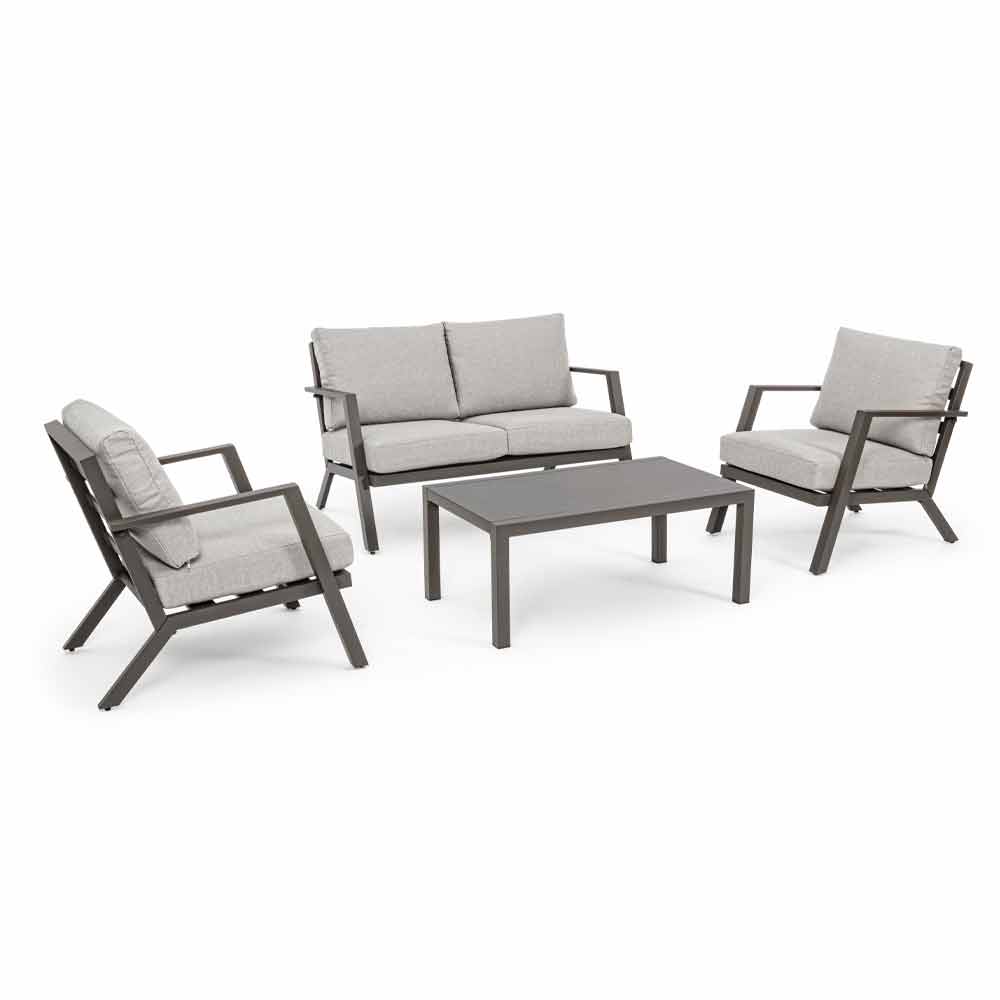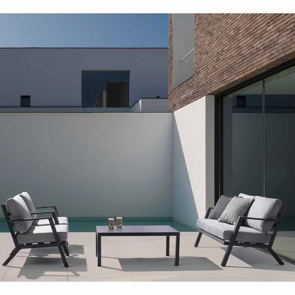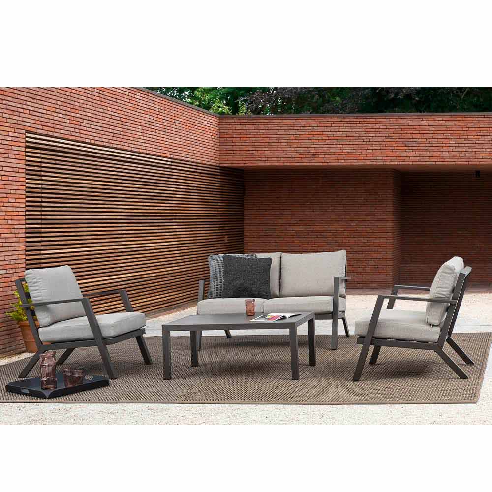 coated aluminum structure (polyester). Seat and back cushions with removable covers with
