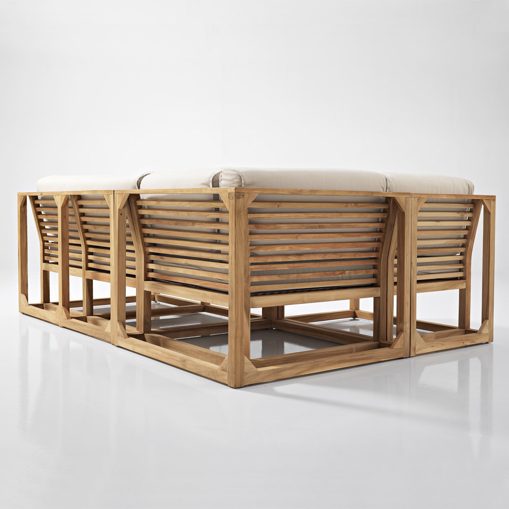 Modular garden lounge in natural teak and cushions