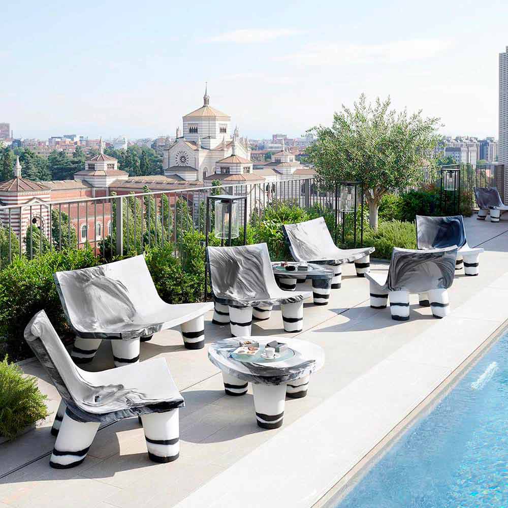 Low Lita Anniversary is a lounge chair ideal for decorating indoor and outdoor environments. Made in a special edition, it makes use of sophisticated working processes for molding polyethylene for a unique aesthetic result.