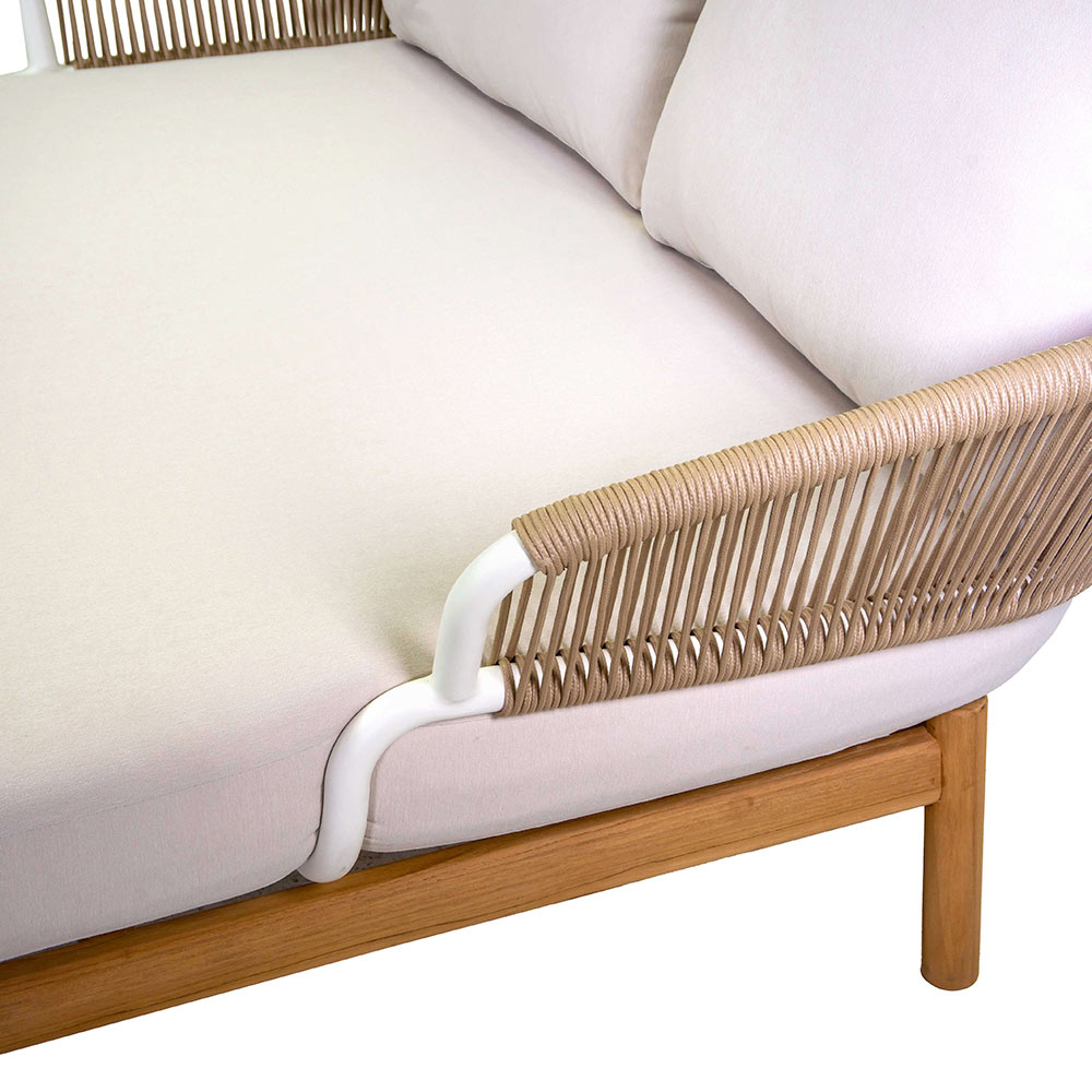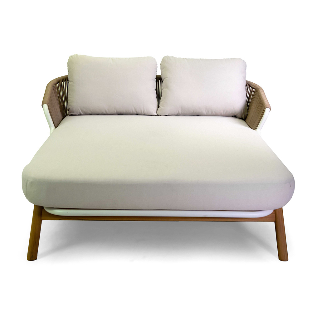 This sun lounger combines elegance and comfort, making it the perfect addition to any indoor or outdoor space. Its high-quality teak wood construction ensures durability and weather resistance, while its sleek design and clean lines will blend seamlessly with any interior. The soft and durable fabric upholstery provides maximum comfort, making it the perfect place to relax. The cushions add to the comfort, making this sun lounger a relaxing oasis perfect for enjoying moments of pure tranquility outdoors or in a bright living room.