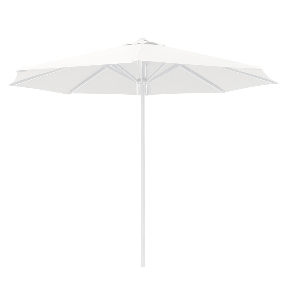 Outdoor umbrella with aluminum structure and acrylic fabric.