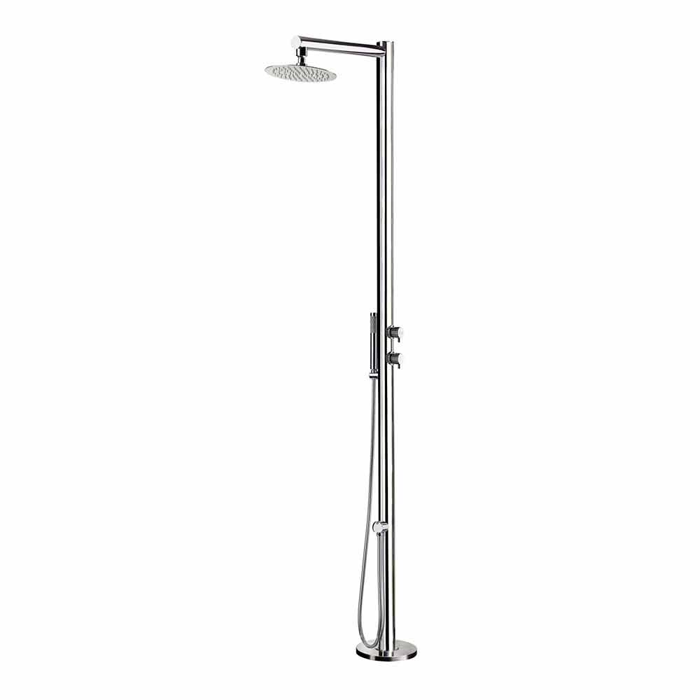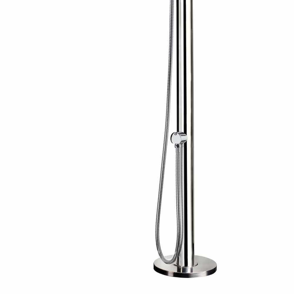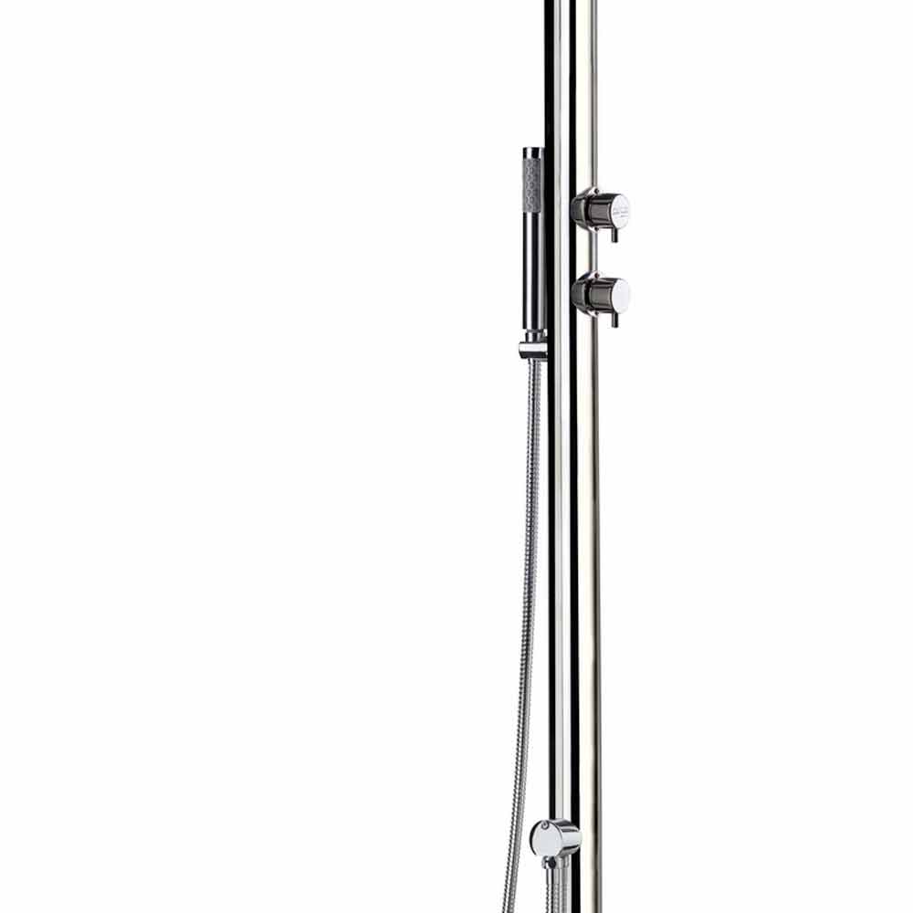 Outdoor shower hot/cold water in stainless steel with polished finish and hand shower Made in Italy.